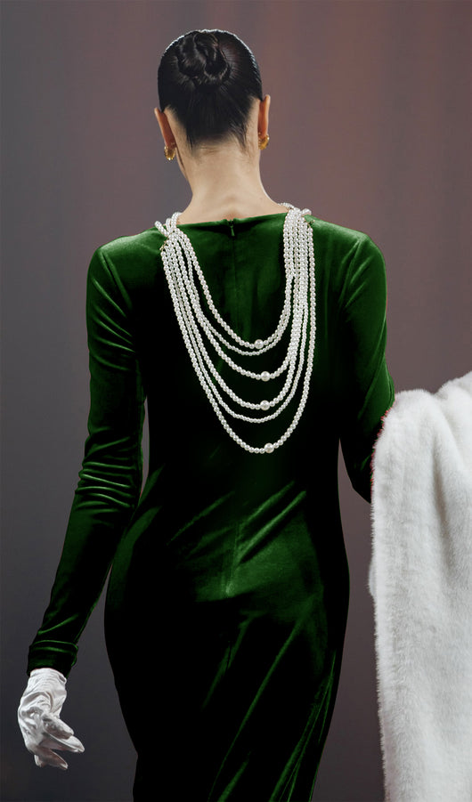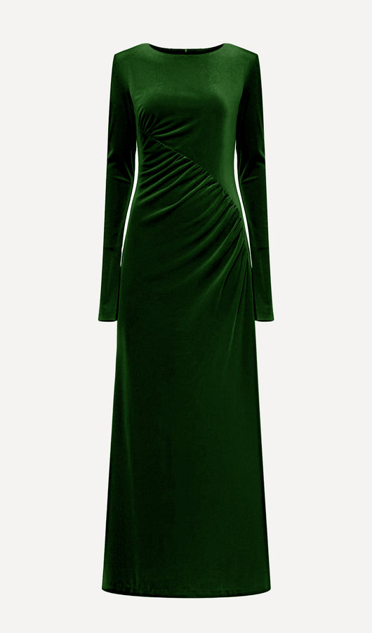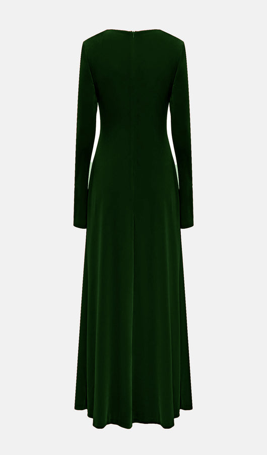 Long Sleeved Gathers Maxi Dress Dark Green