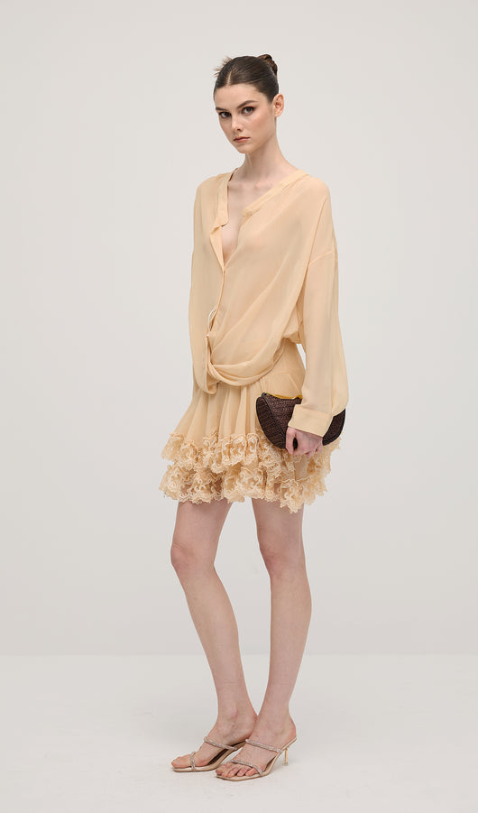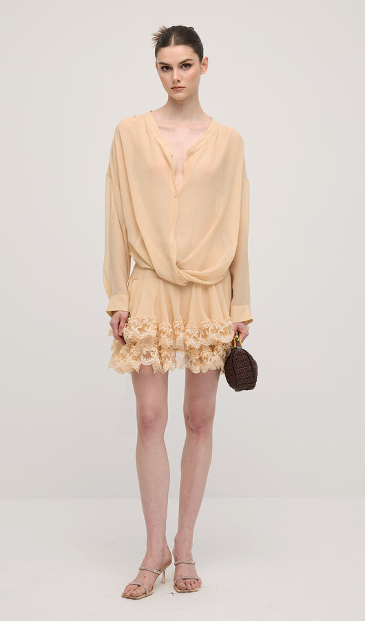 Elevate your wardrobe with the Long Sleeves Layered Folds Mini Dress, expertly designed to combine sophistication and modern style. Featuring long sleeves and a layered fold detail, this mini dress offers a flattering silhouette that enhances movement and adds depth to your look. Perfect for both formal occasions and chic everyday wear, its tailored fit ensures comfort without compromising elegance. This dress is a versatile addition for those seeking refined fashion with a contemporary edge.