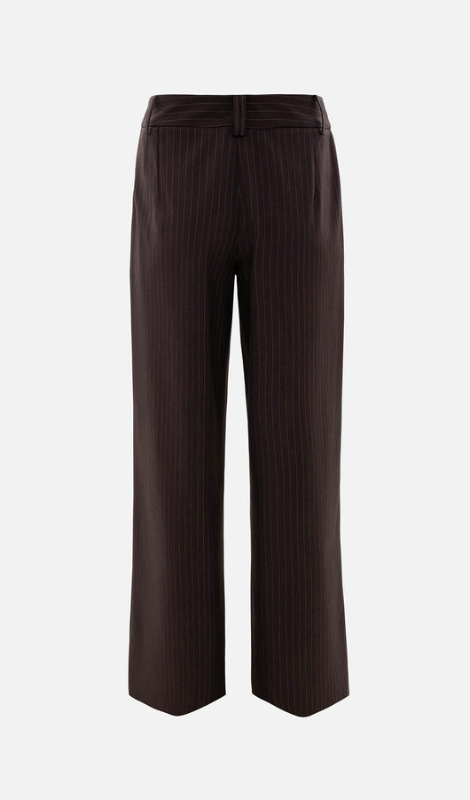 Loose-fitting, mid-rise trousers with delicate pleats at the waistband, made from a dense pinstripe fabric to be paired with the matching shirt.
