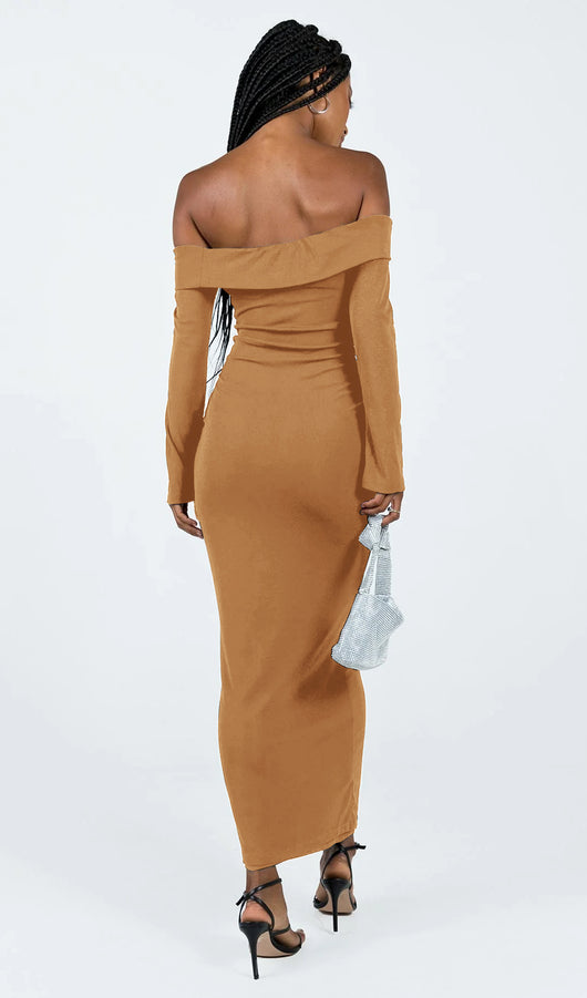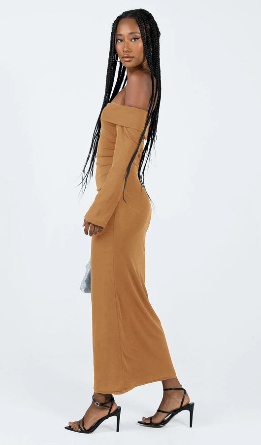 Maida Folded Neckline Maxi Dress Camel