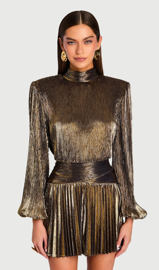 Metallic Puff Sleeve Mini Dress