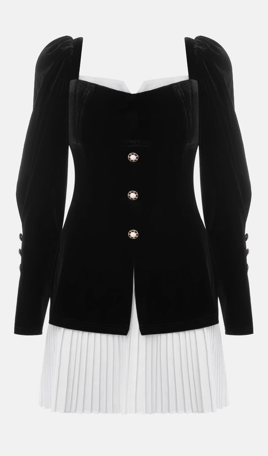Mini Blazer Dress With Contrasting Pleated Skirt
