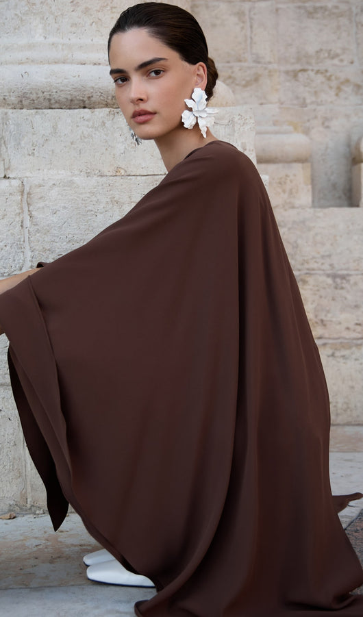 Mini Dress With Flowing Cape In Brown