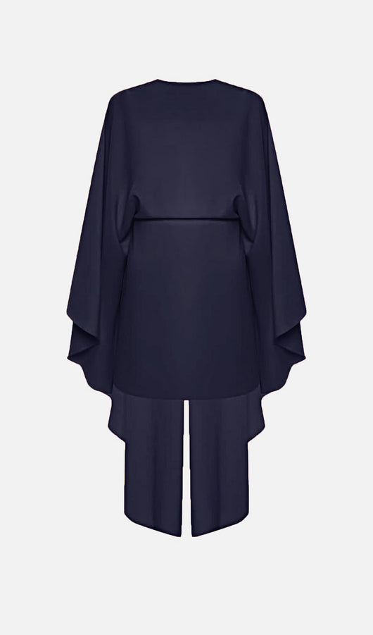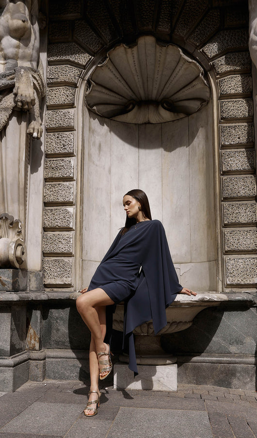 Mini Dress With Flowing Cape In Navy