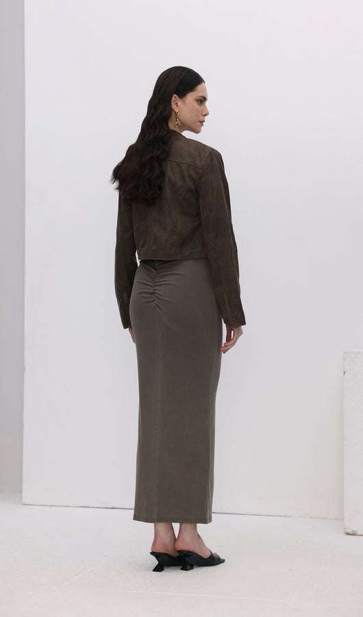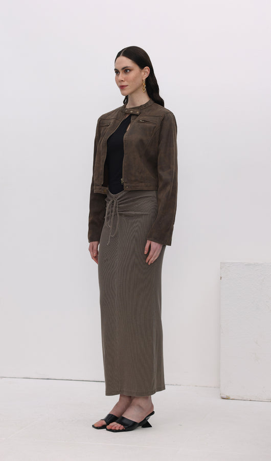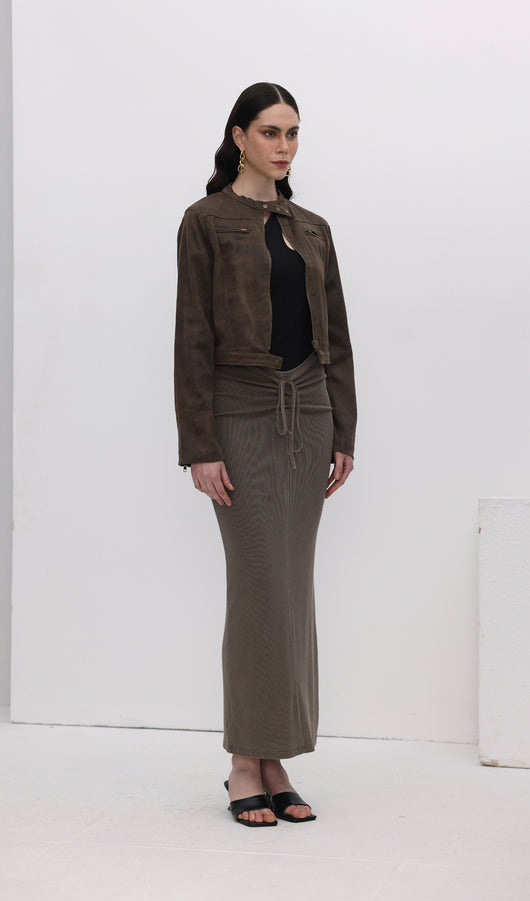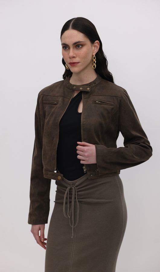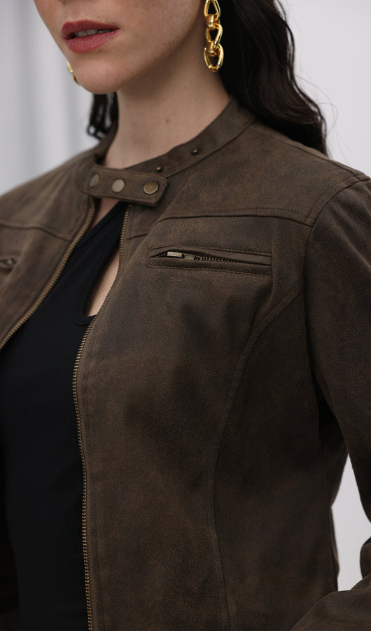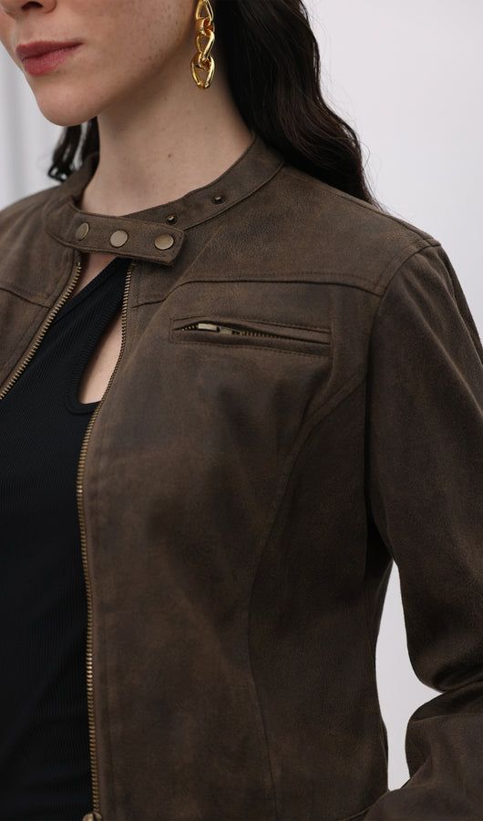 This moto jacket in chocolate is the perfect combination of style and functionality. With its sleek design and durable material, it will keep you warm and on-trend. Made with high-quality fabric, it offers both comfort and protection. Ideal for any occasion, this jacket is a must-have for any fashion-forward individual.