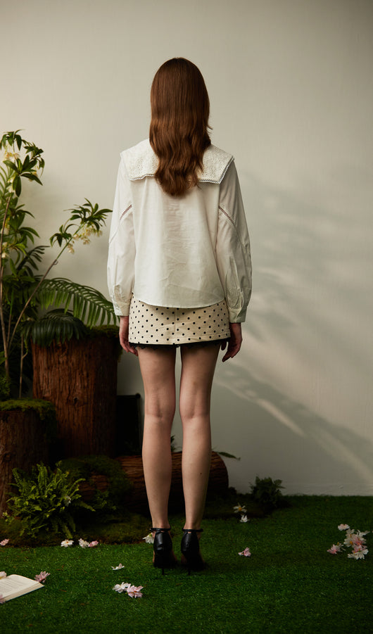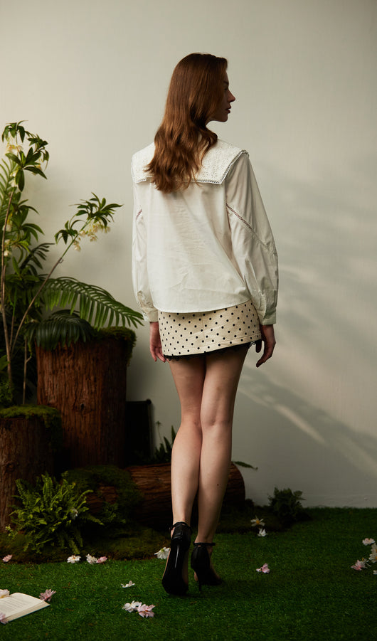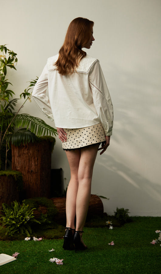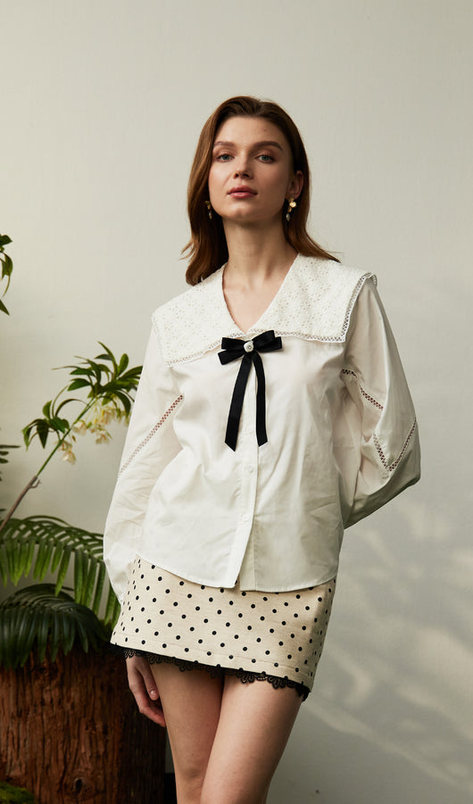 Expertly crafted, this Navy Collar Shirt features a charming bow detail and long sleeves for a polished look. Made with high-quality fabric, it offers stylish versatility and comfort, perfect for any occasion.