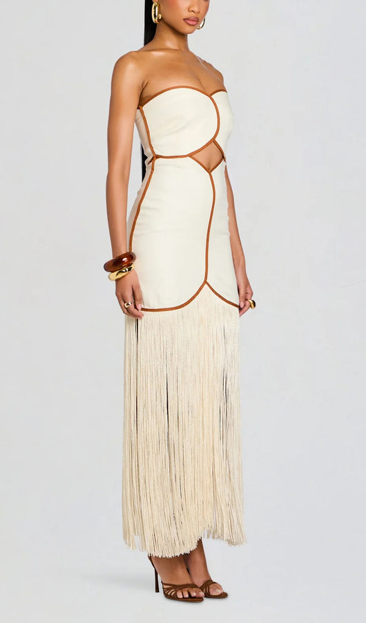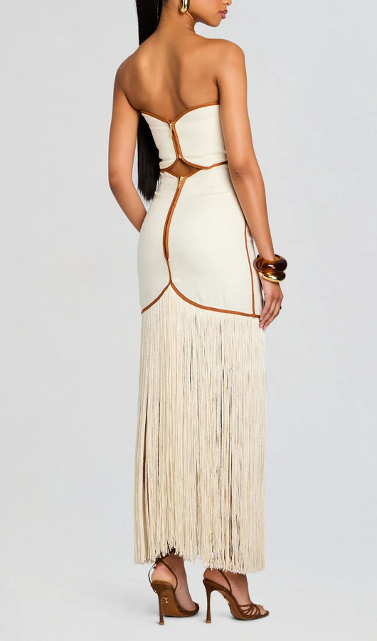 Off Shoulder Hollow Out Tassel Maxi Dress