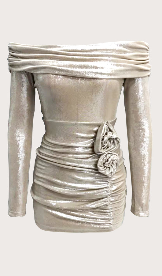 Off Shoulder Long Sleeve Mini Dress