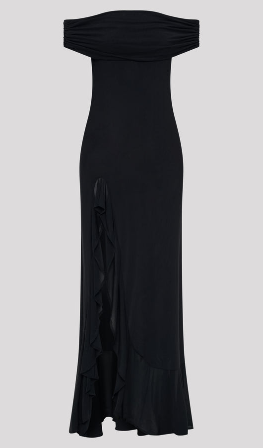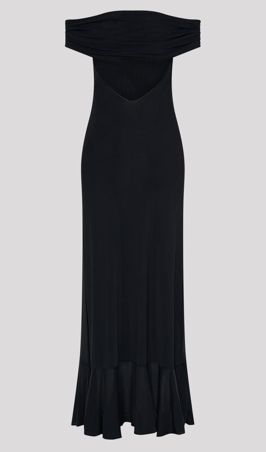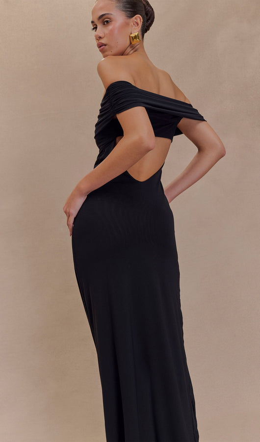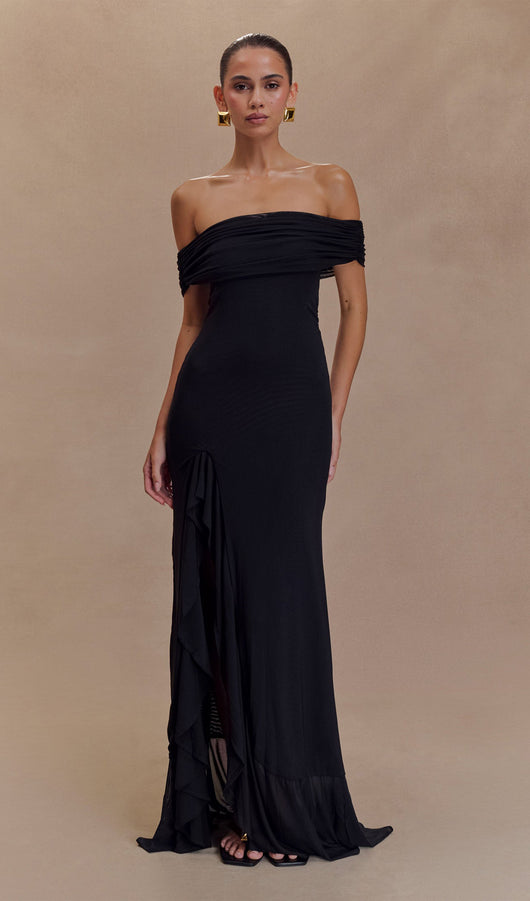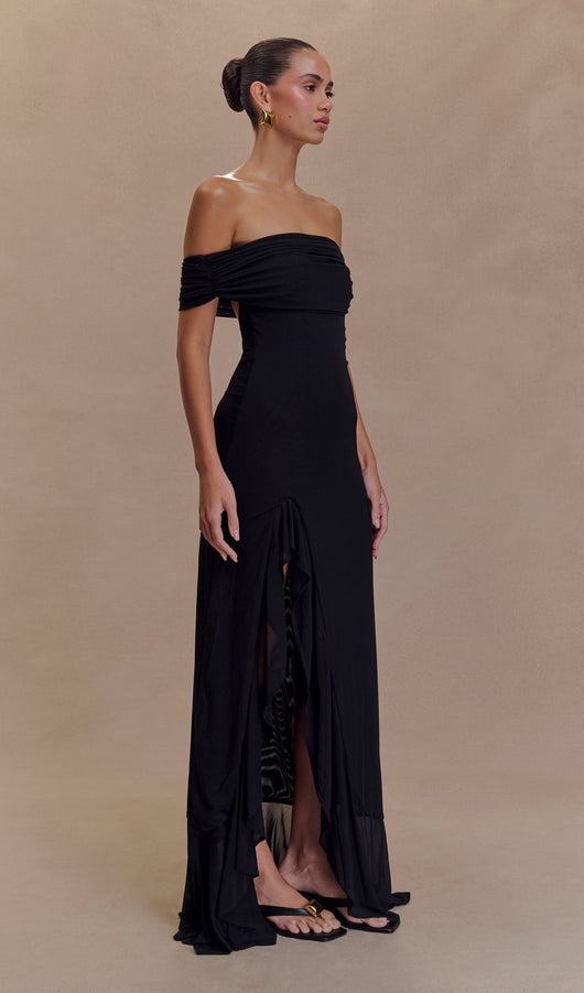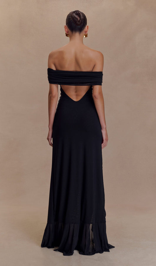 Off Shoulder Mesh Maxi Dress In Black