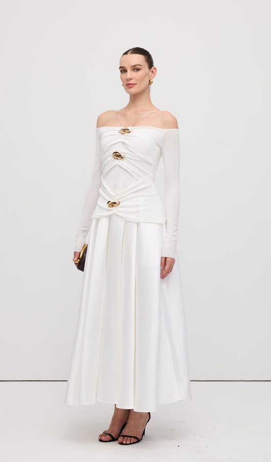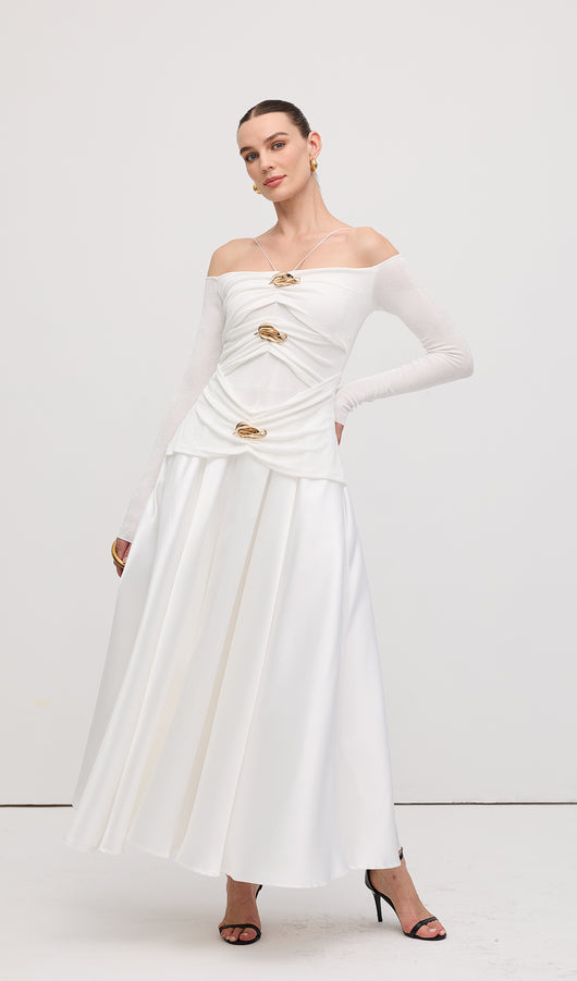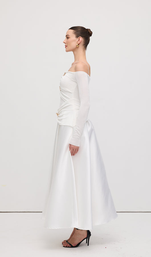 Off Shoulder Panelled Maxi Dress