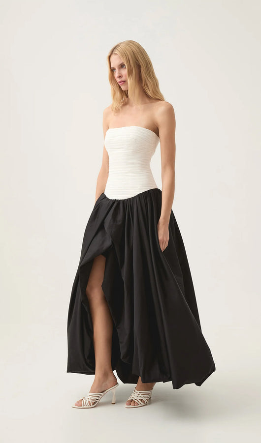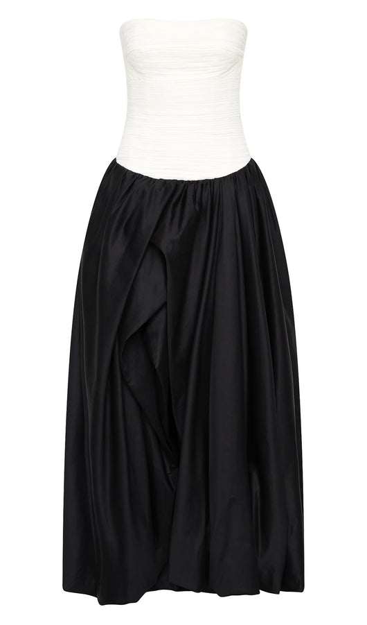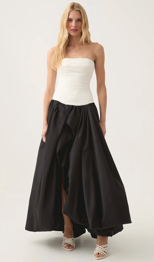 Off Shoulder Ruched Bubble Hem Maxi Dress