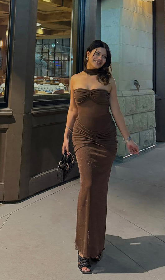 Introducing the dress that will leave a trail of fairy dust with its glitter mesh fabric. A must-have for anyone who loves a touch of magic in their wardrobe.