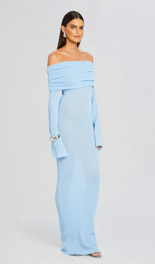 Experience effortless elegance with our Off Shoulder Slim Fit Maxi Dress. Featuring a figure-flattering off-the-shoulder design and a chic fold over neckline, this knit dress is a timeless addition to any wardrobe. Command attention with sophistication and style.