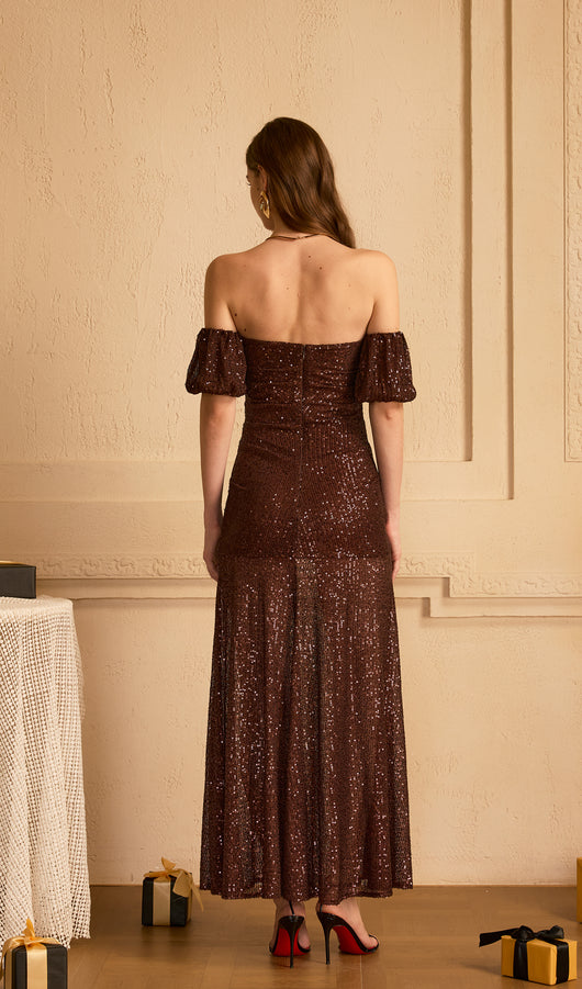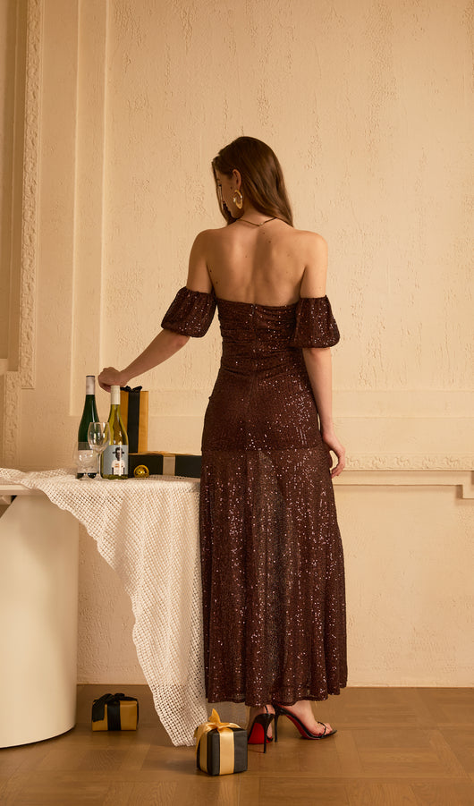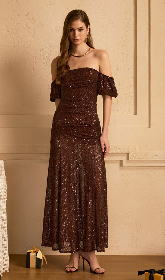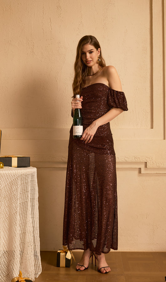 Off Shoulder Stretch Sequin Maxi Dress