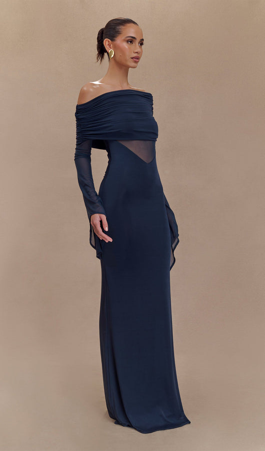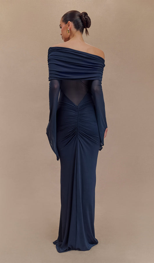 Step out in the One Shoulder Slinky Ruched Maxi Dress, a perfect blend of sophistication and allure. The asymmetrical neckline elegantly highlights your silhouette, while the jersey ruched overlay and lower skirt create a flattering flow. Mesh sleeves and bodice add a touch of intrigue, balancing coverage with allure. With V front and back waist shaping, this dress enhances your figure, and the back ruching detail adds a refined finish. At a stunning maxi length, this dress is ideal for any special occasion, ensuring you make a captivating entrance every time.