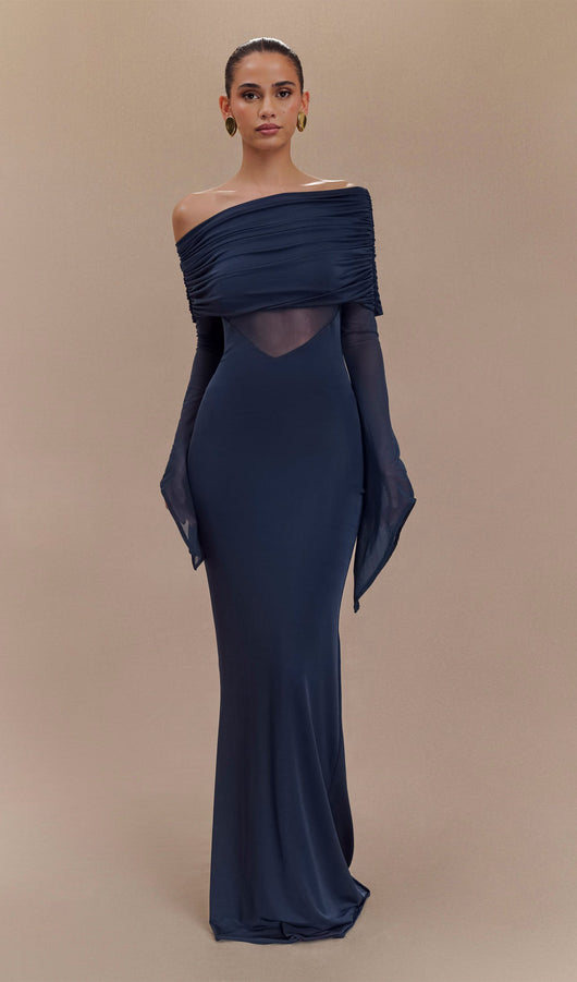 Step out in the One Shoulder Slinky Ruched Maxi Dress, a perfect blend of sophistication and allure. The asymmetrical neckline elegantly highlights your silhouette, while the jersey ruched overlay and lower skirt create a flattering flow. Mesh sleeves and bodice add a touch of intrigue, balancing coverage with allure. With V front and back waist shaping, this dress enhances your figure, and the back ruching detail adds a refined finish. At a stunning maxi length, this dress is ideal for any special occasion, ensuring you make a captivating entrance every time.