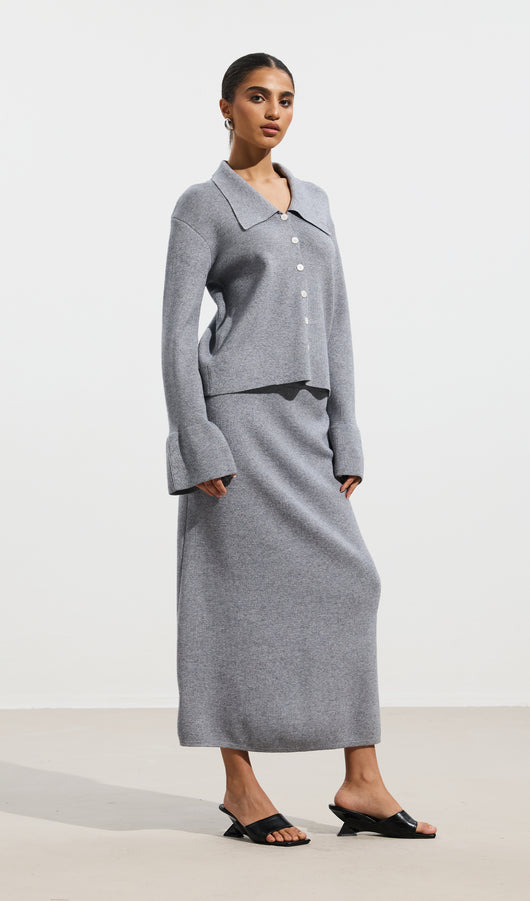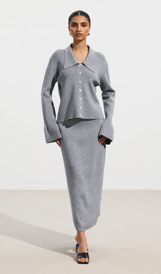 Meet your new go-to piece: the Oversized Collar Knit Top & Midi Skirt Set. Crafted from soft, high-quality knit fabric, this set offers a flattering, easy-to-wear silhouette .This top features a relaxed silhouette and a standout oversized collar with a flattering V-neckline The midi length brings just the right amount of polish, making it perfect for dressing up or down.