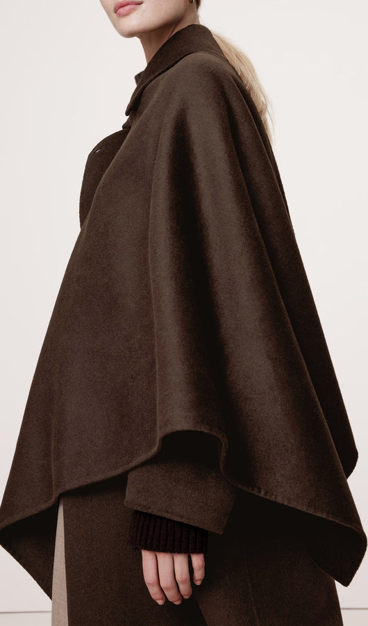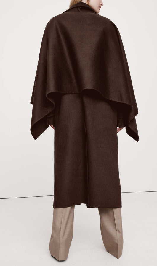 Oversized Double-Faced Cape Coat-Coffee