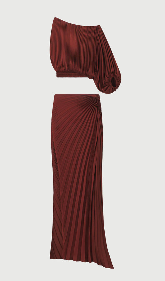 Pleated Asymmetric Top & Maxi Skirt Set
