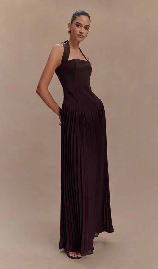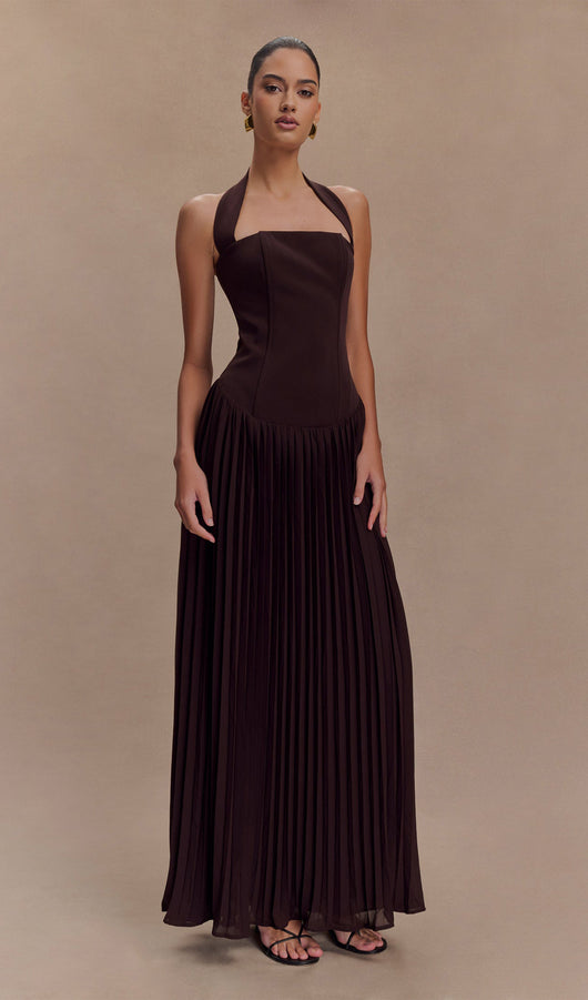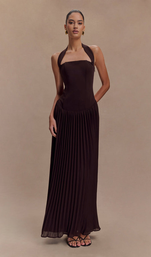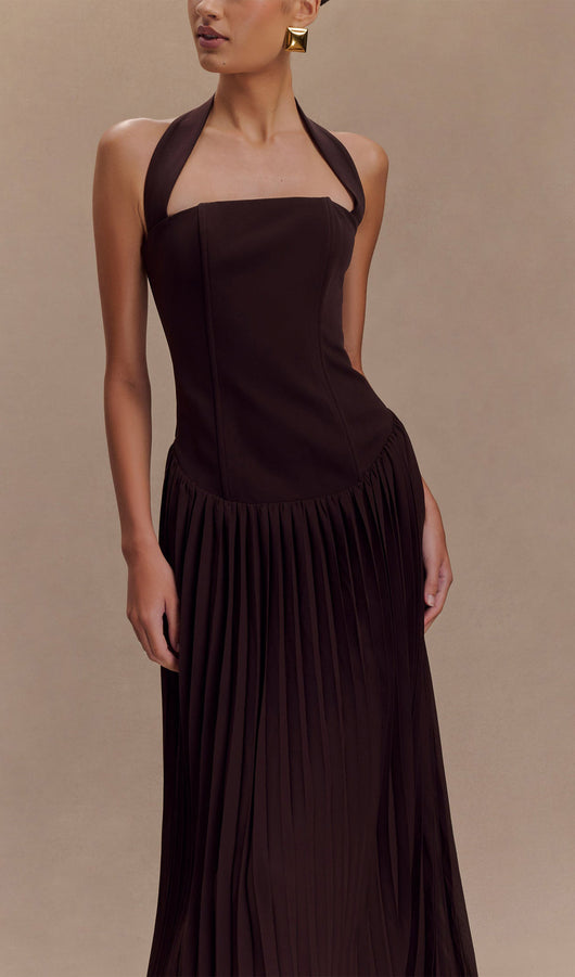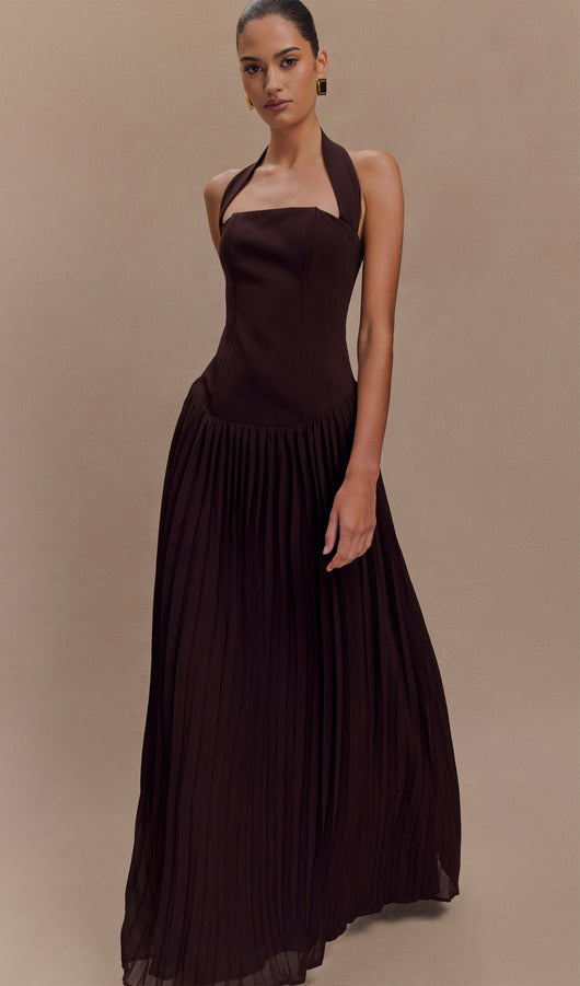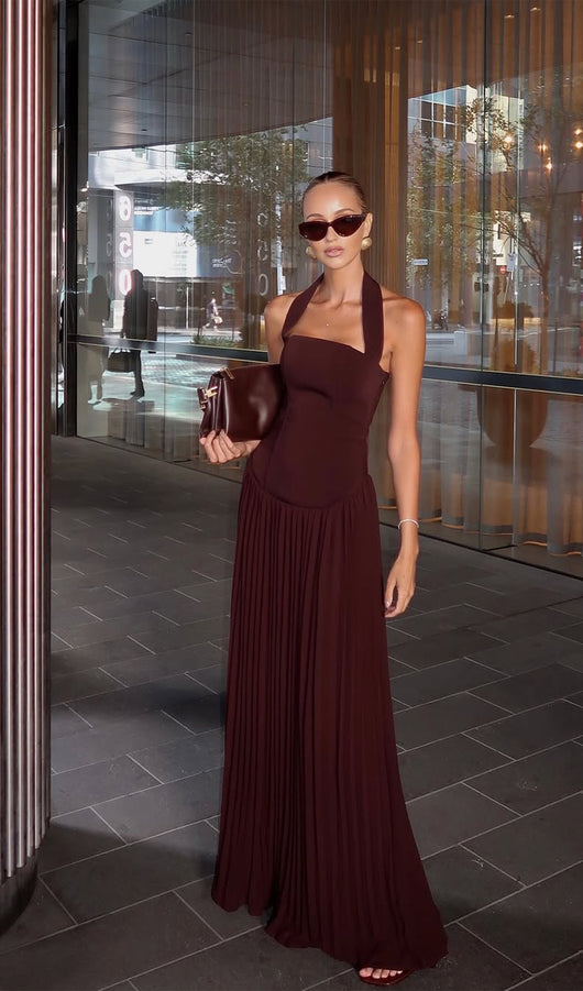 Pleated Halter Maxi Dress