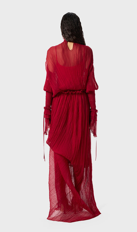 Pleated Silk-Chiffon Slit Maxi Dress In Red