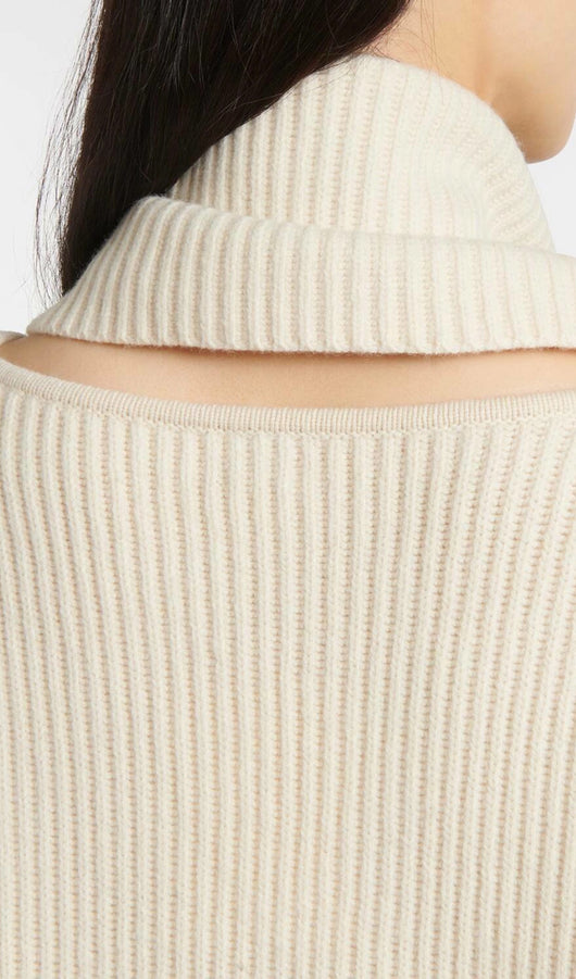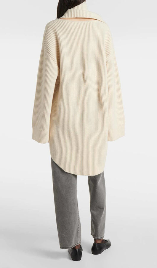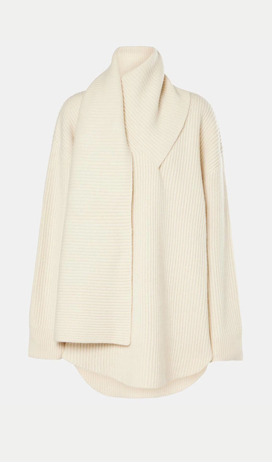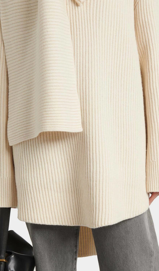 Ribbed-Knit Wool Scarf Sweater In Apricot