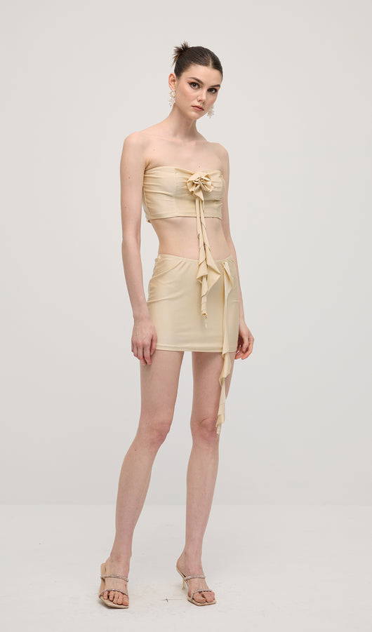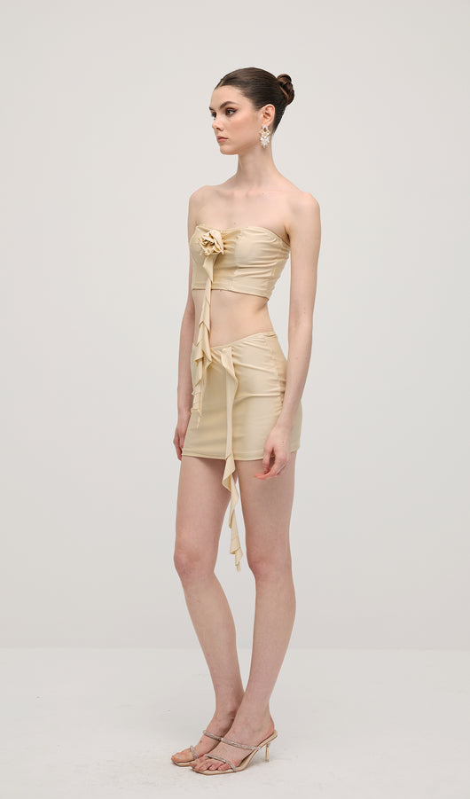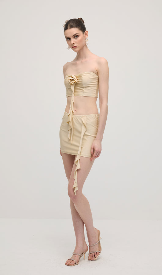 Get ready to turn heads in this Gold Ruffle 3D Flower Dress Set! The strapless top and skirt feature stunning 3D flower details, adding a touch of whimsy to this sexy outfit. Perfect for a night out, this set is sure to make you feel like a fashion icon. Watch out world, here comes your new favorite outfit!