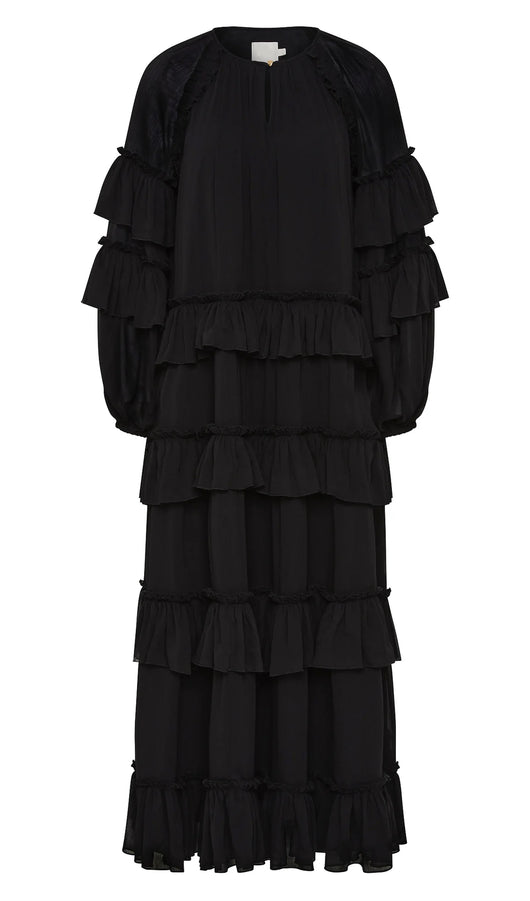 Ruffle Tiered Puff Sleeve Maxi Dress