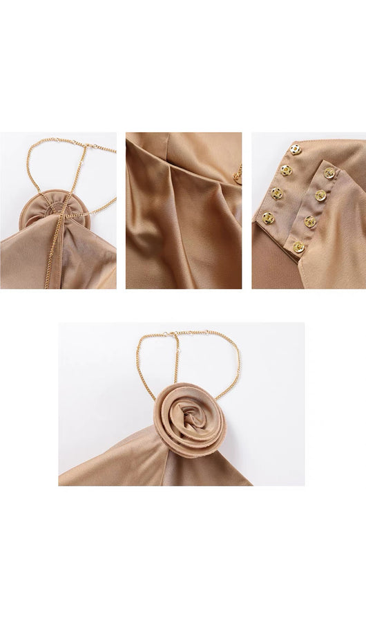 Experience luxurious comfort and effortless style with our Satin Cowl Neck Halter Top. The soft satin material and unique cowl neck design add a touch of elegance to any outfit. With its irregular shape, this top stands out in a crowd and gives you a one-of-a-kind look.