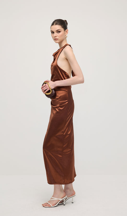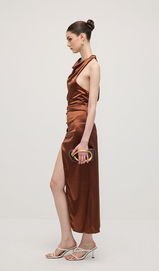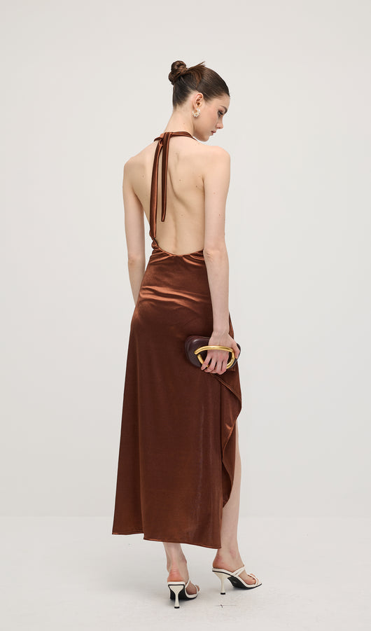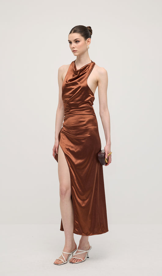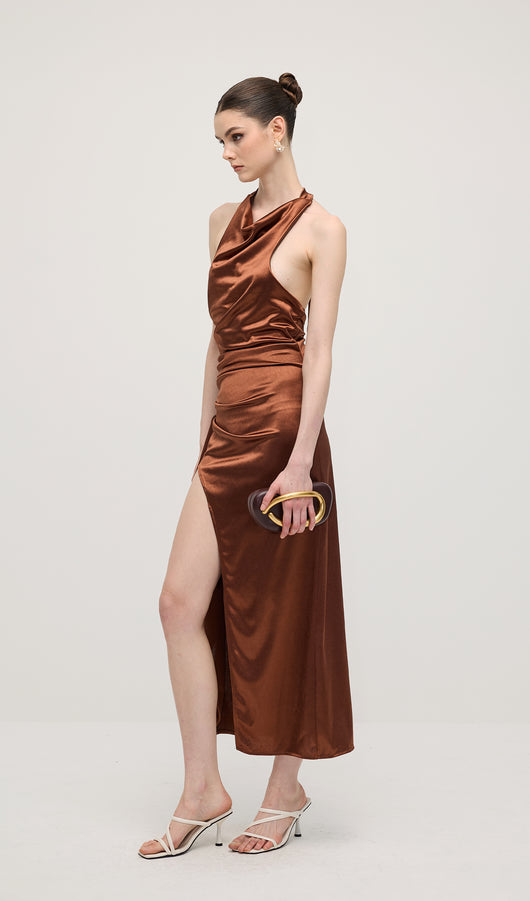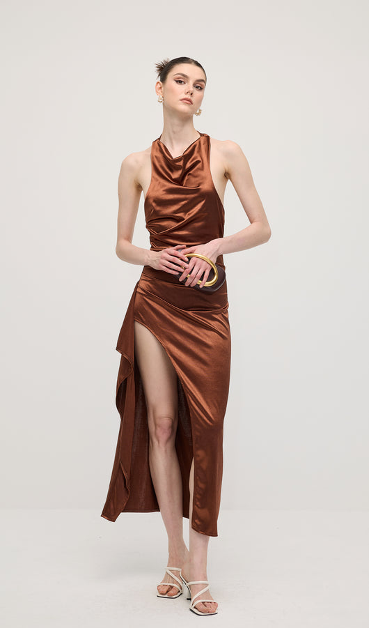Satin Halter Slit Midi Dress