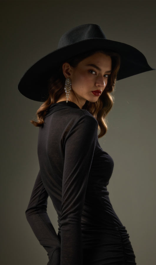Hand wash with mild detergents in cold water only. Do not exceed the recommended water temperature to prevent color fading. To prevent the deformation of the jersey fabric, do not machine wash or tumble dry. The garment requires delicate treatment. It is recommended to wear the garment with care. Avoid friction with bags and other accessories to prevent the fabric from pilling and getting loose stitches. To remove pilling from the garment, use a battery-operated pilling remover