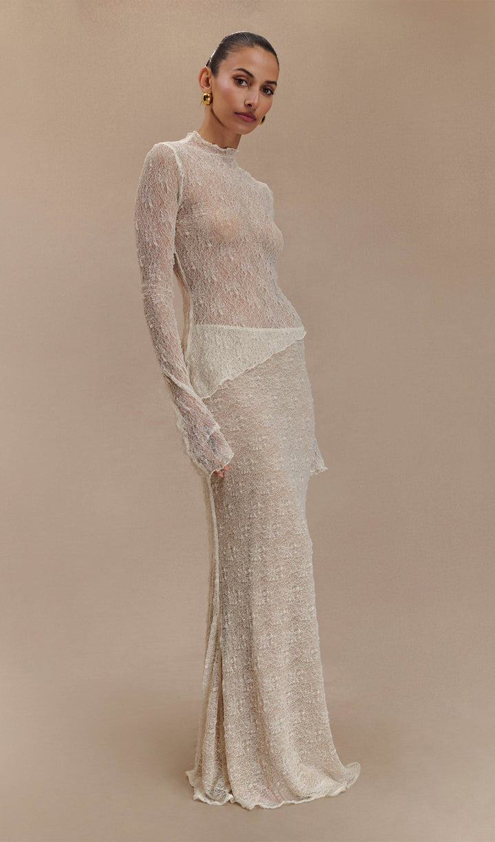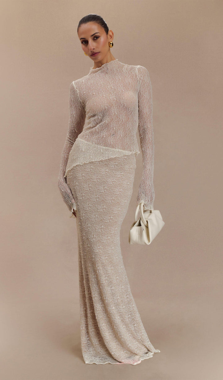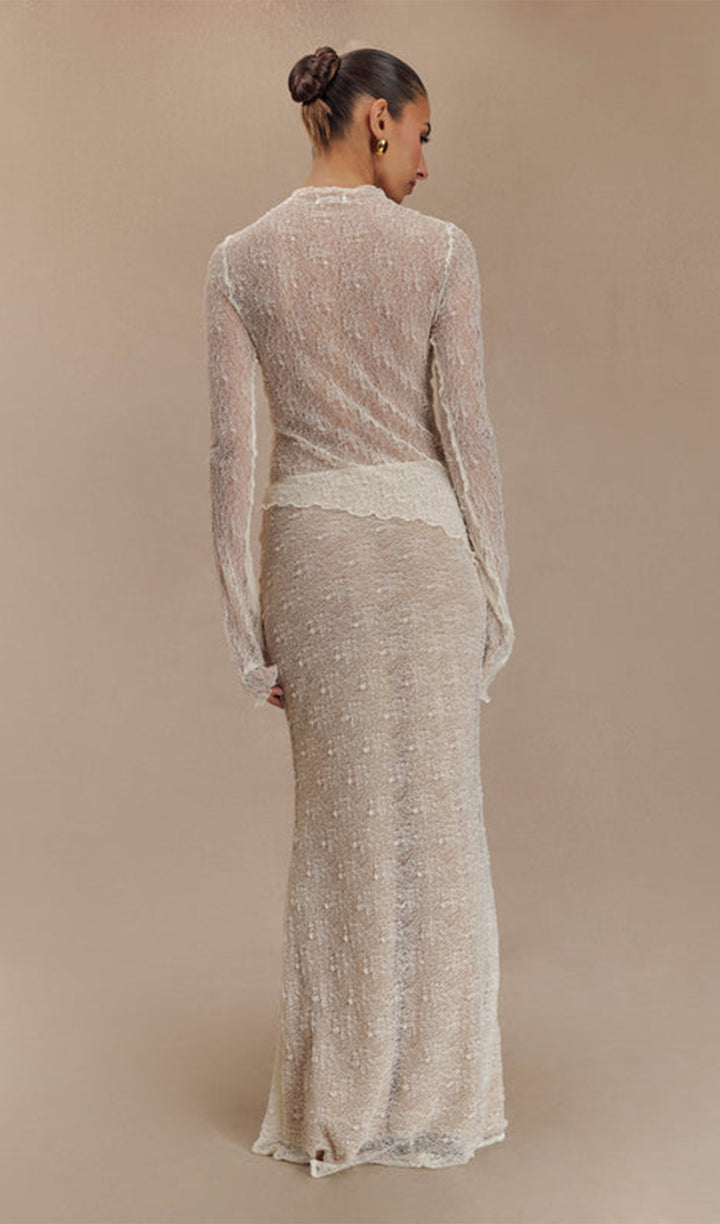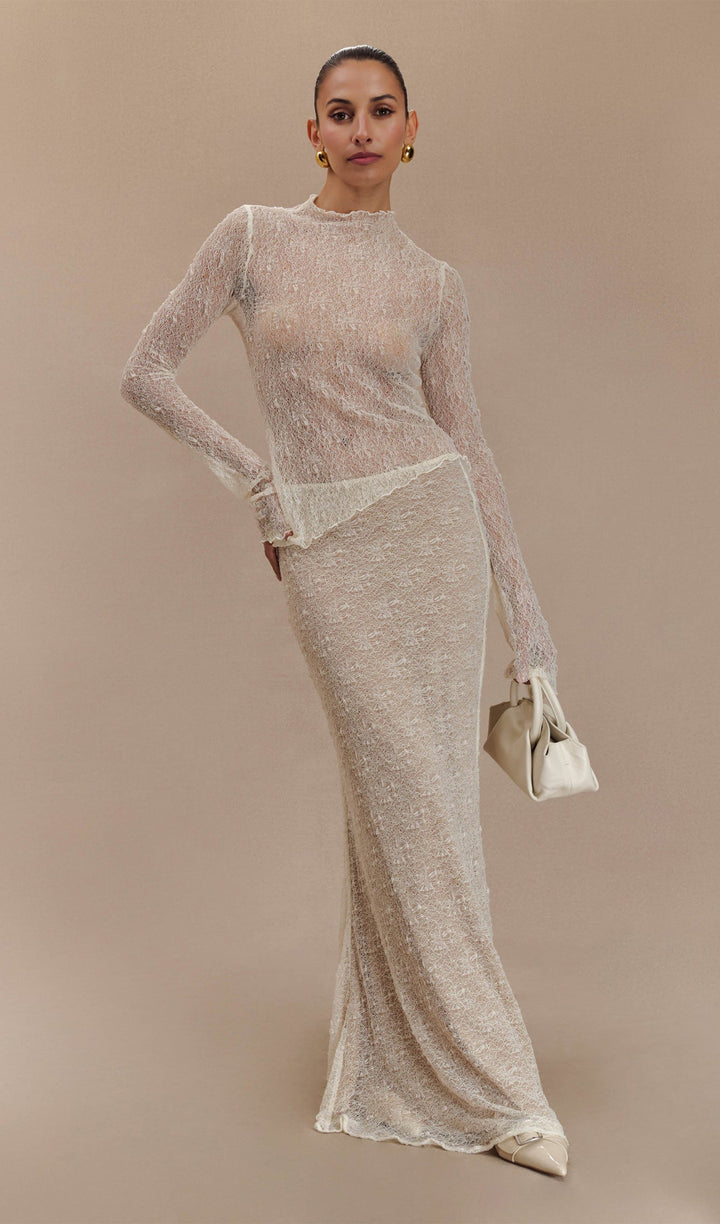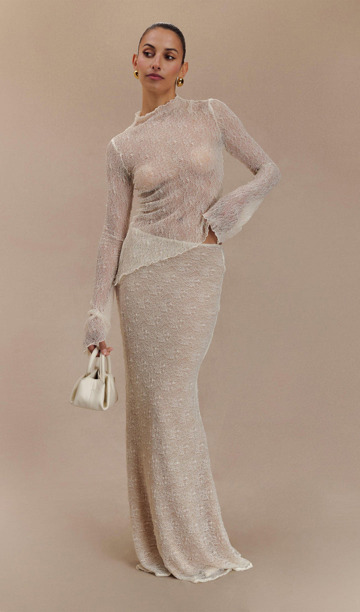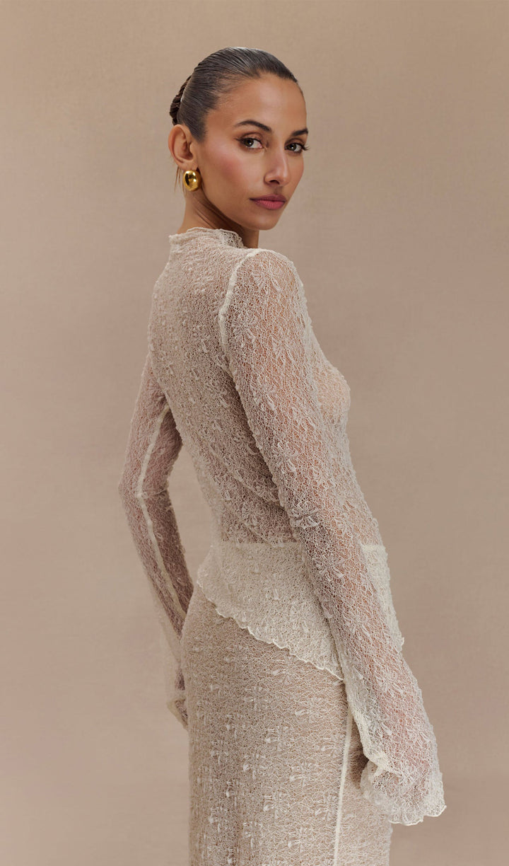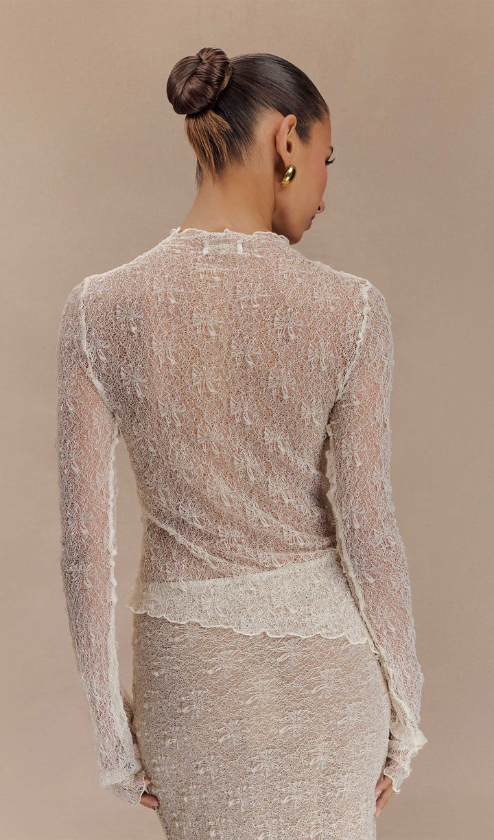 Sheer Lace Long Sleeve Top - Ivory