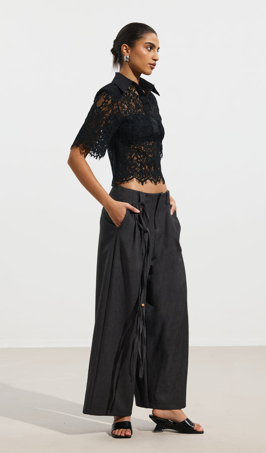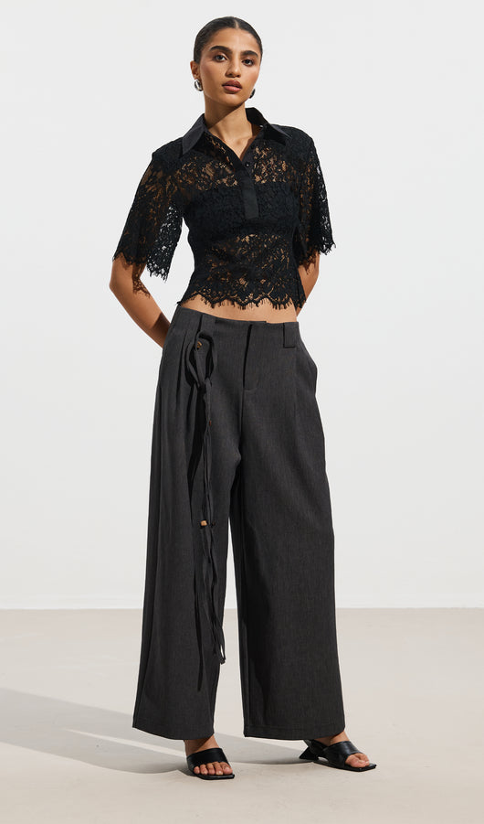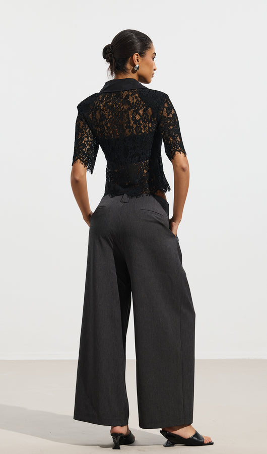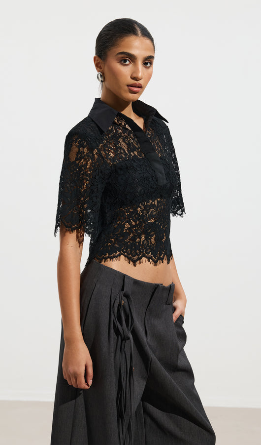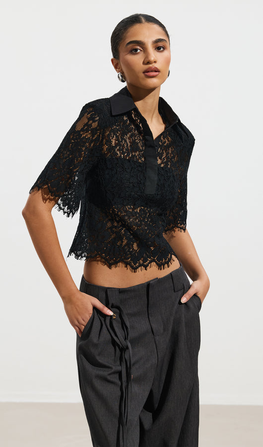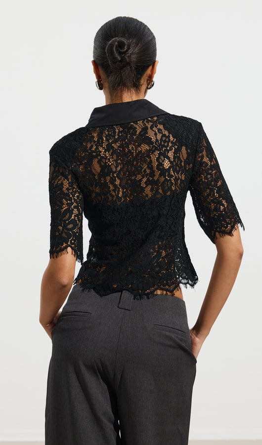 Expertly crafted with delicate lace and sheer fabric, this short-sleeved top is both elegant and versatile. Its lightweight design offers a comfortable fit while the intricate lace adds a touch of femininity. Perfect for any occasion, this top is a must-have for any fashion-forward wardrobe.