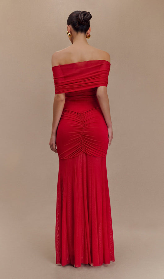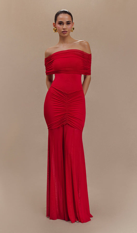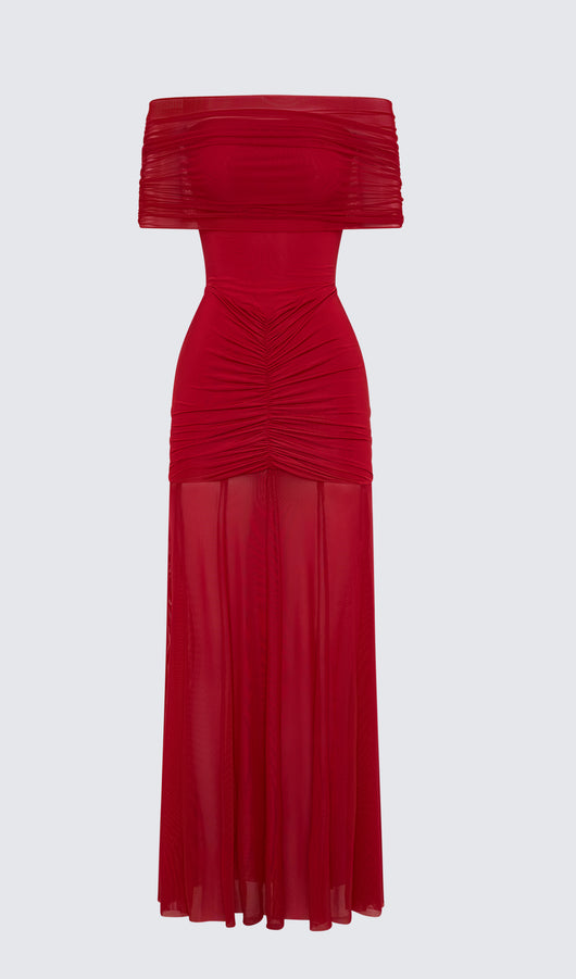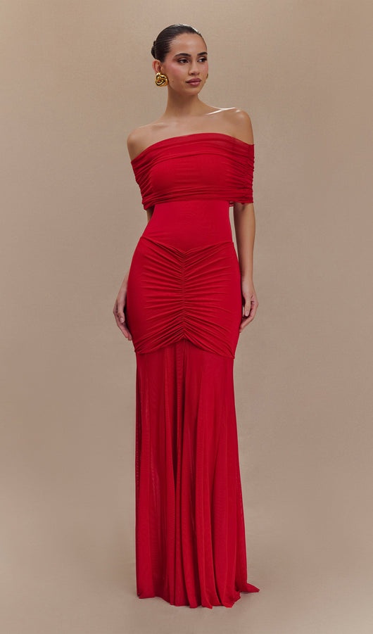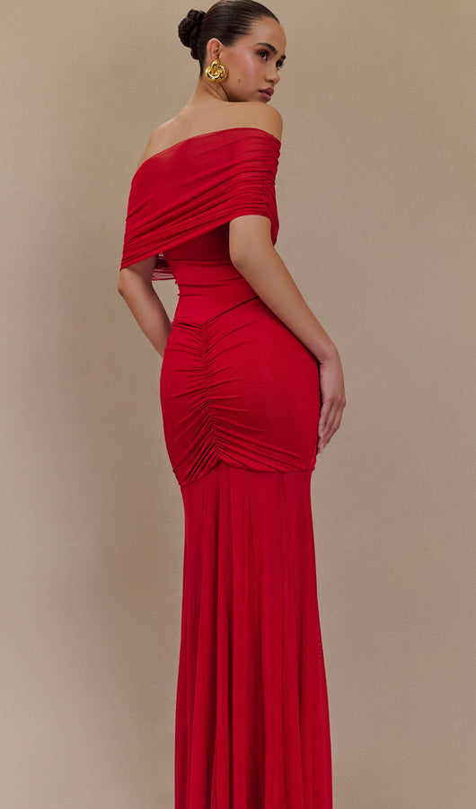 Slinky Off Shoulder Maxi Dress - Ruby