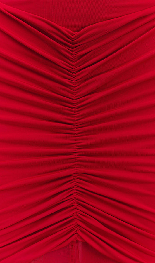Boasting a boat neckline and a strapless internal design with an elegant mesh overlay, this dress effortlessly combines glamour with a touch of drama. Ruching detail at the front and back waist enhances your silhouette, ensuring a flattering fit that's as comfortable as stylish. The flowing mesh skirt adds an ethereal charm, while the lined bodice provides comfort and coverage. Perfect for formal events or special occasions, the maxi length exudes grace and refinement, making it a standout choice for evenings filled with magical moments.