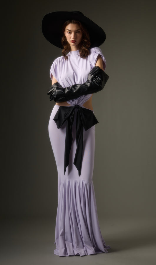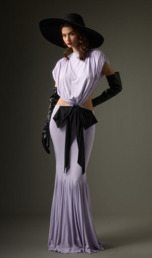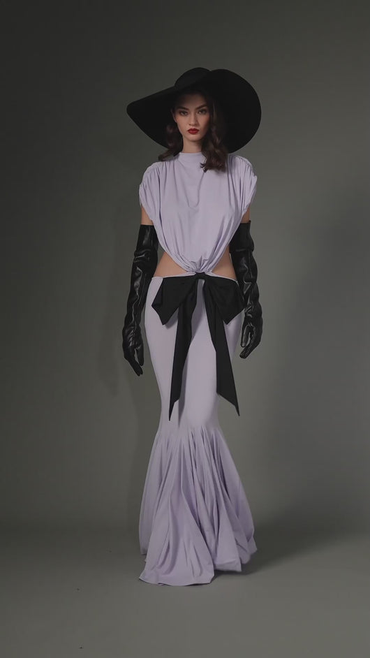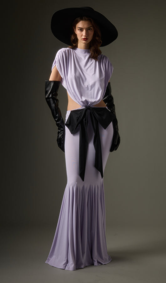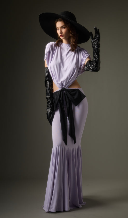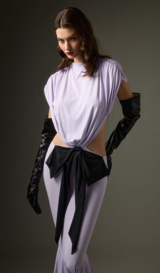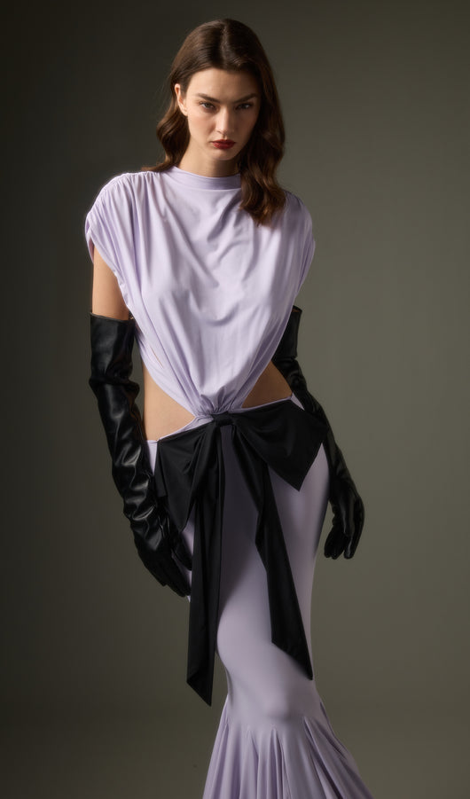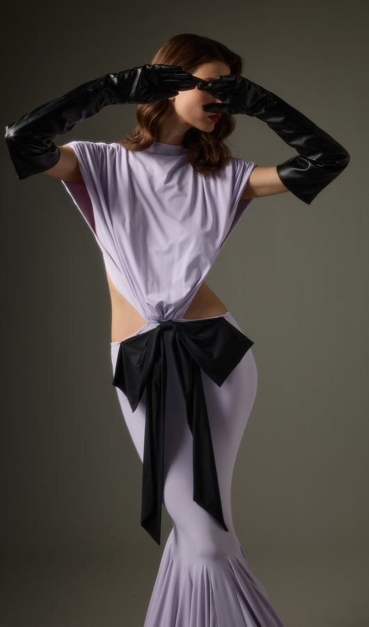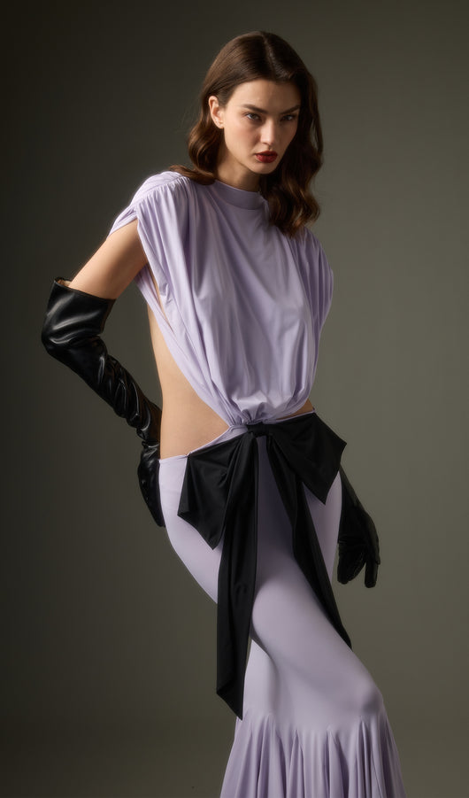 - Jersey fabric with satin bow detail