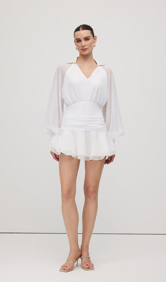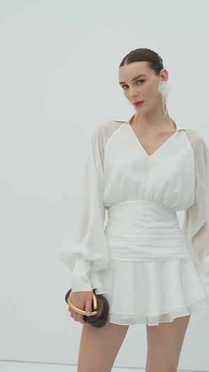 This Solid Lantern Sleeve Mini Dress is a must-have for any fashion-forward wardrobe. The chic lantern sleeves add a touch of drama and sophistication, while the high-quality fabric provides a comfortable, flattering fit.The neckline and cuff expertly crafted from luxurious 100% silk. Perfect for any occasion, this dress is a versatile and stylish addition to your closet.