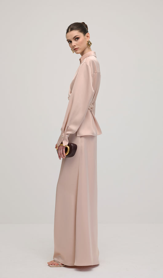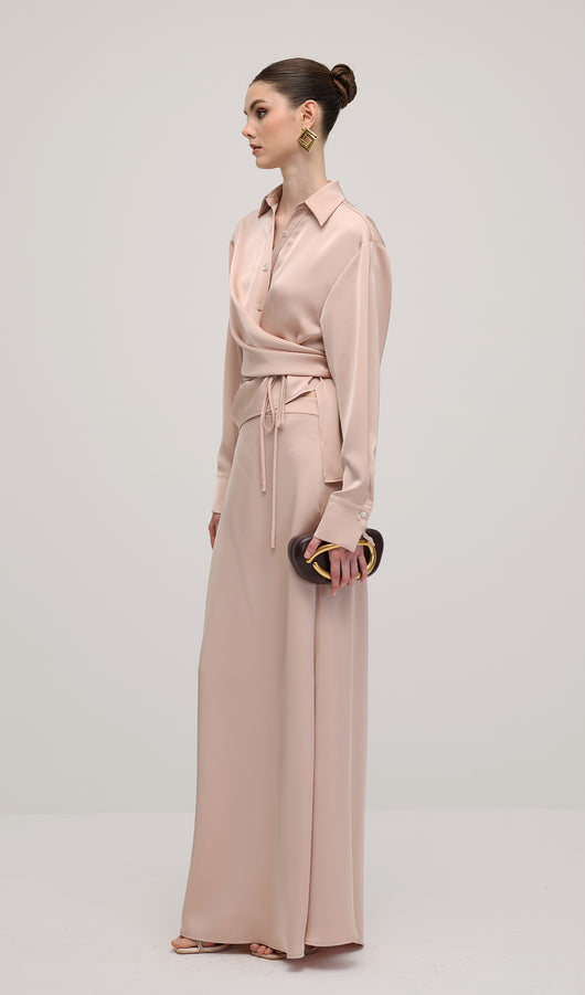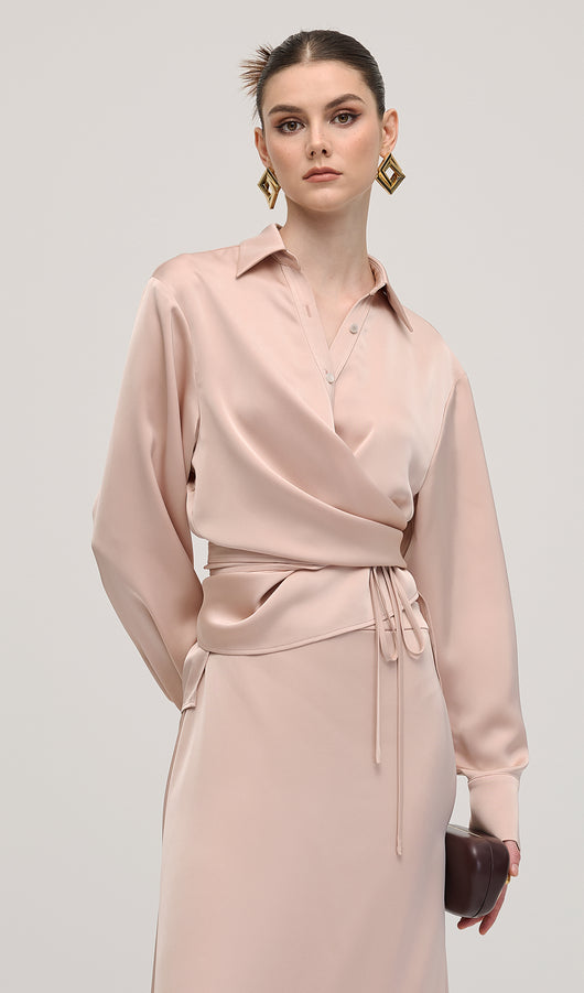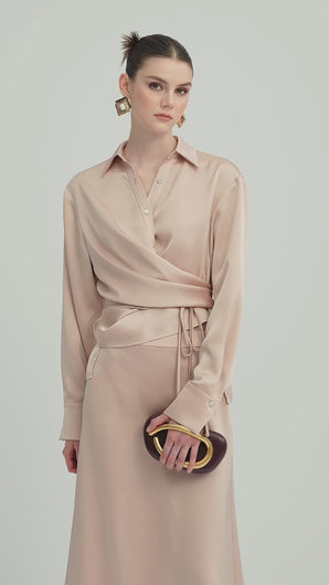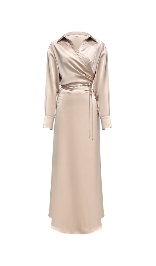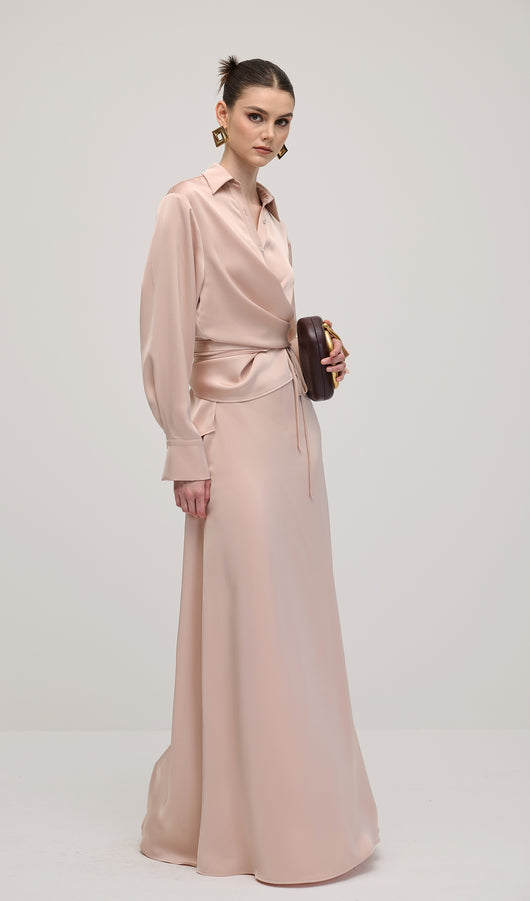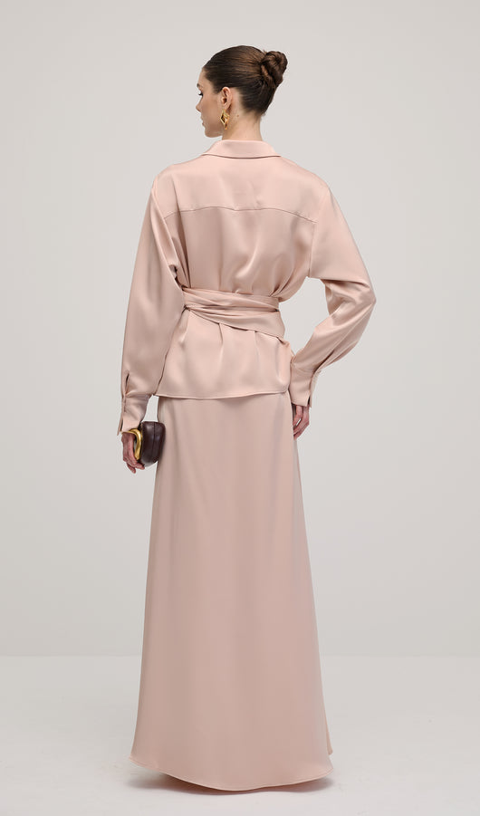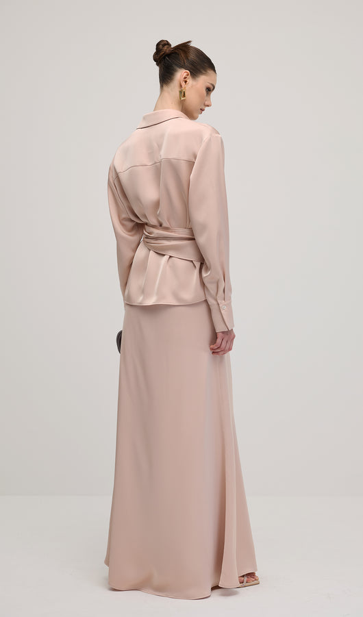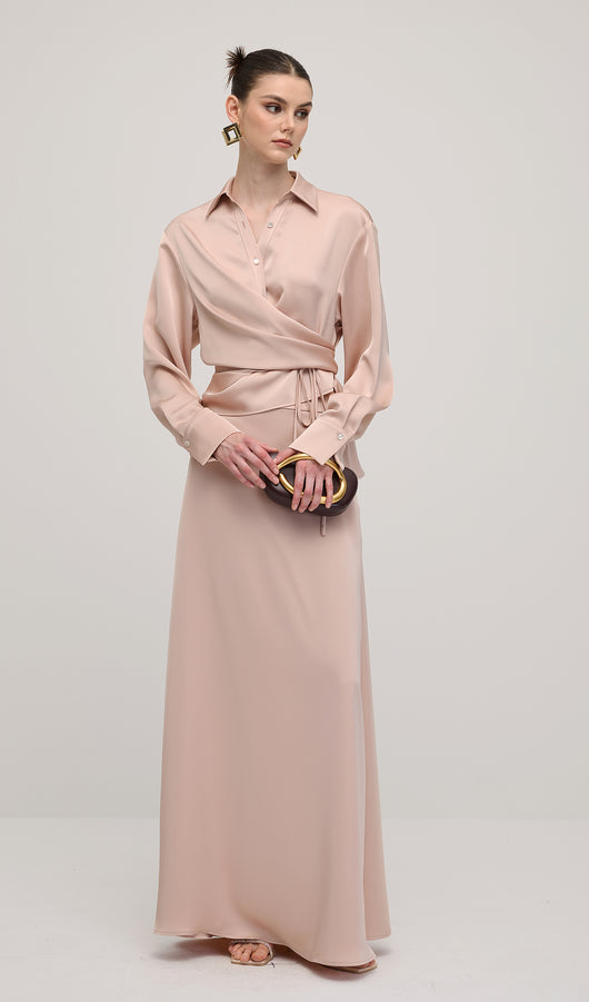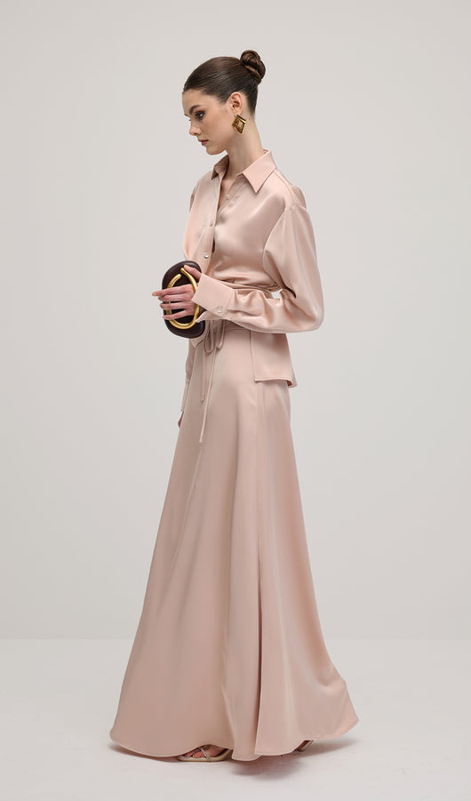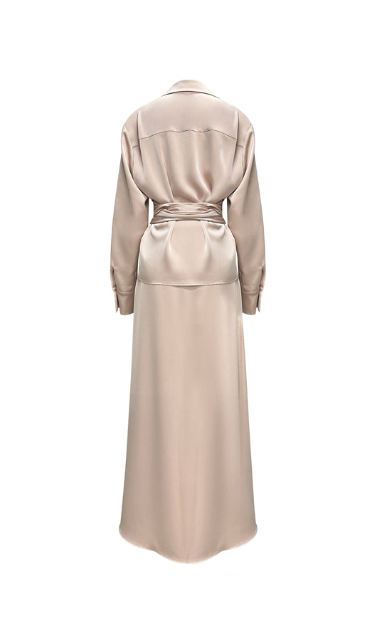 Solid Satin Shirt Maxi Dress Sets