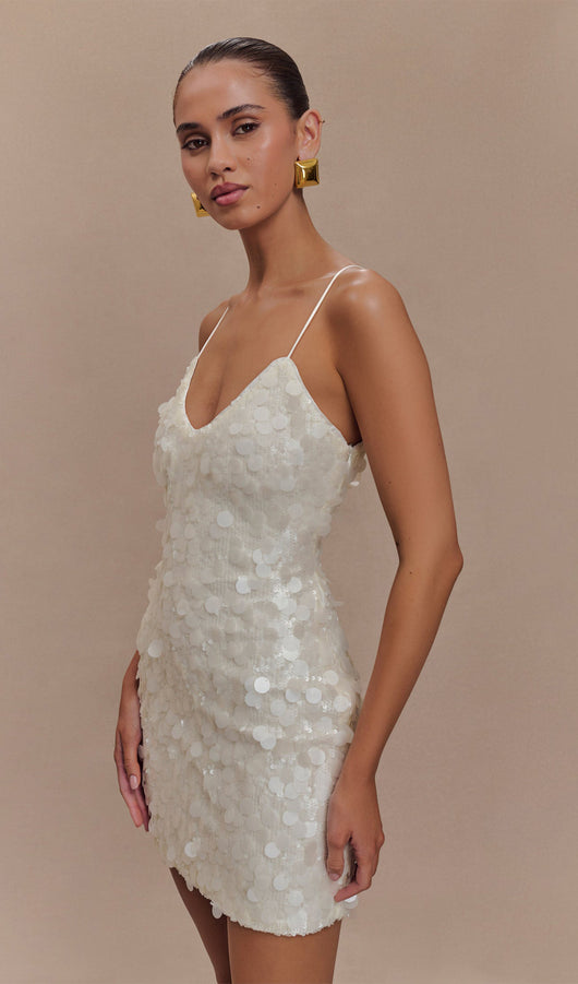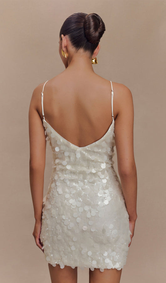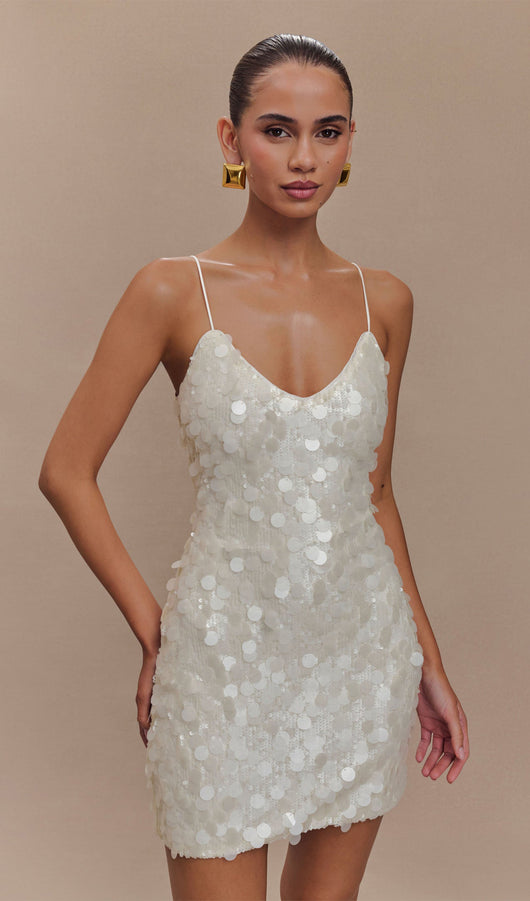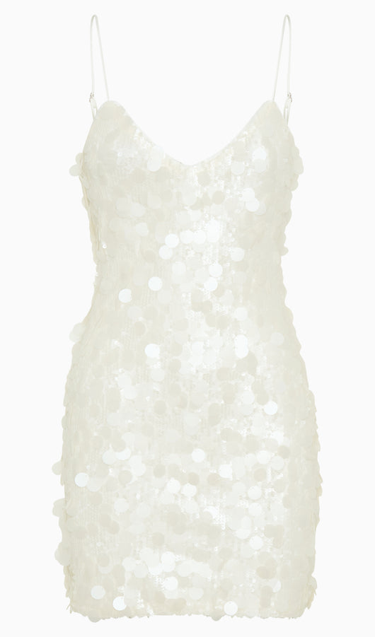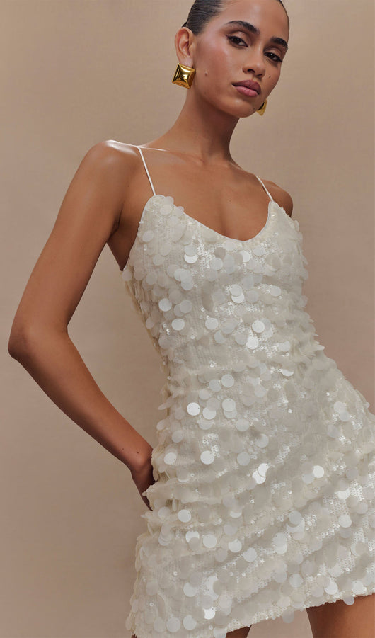 The Sequin Mini Dress is a metallic beauty that is sure to turn heads and an instant favourite for night-out. With thin straps and a side invisible zipper, this dress is sure to fit comfortably through the glorious days and nights of your party adventures.