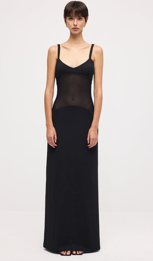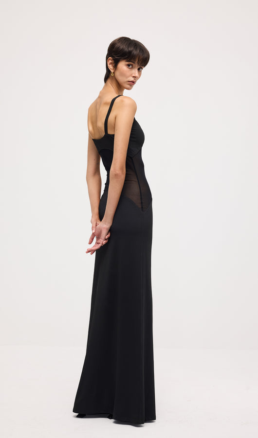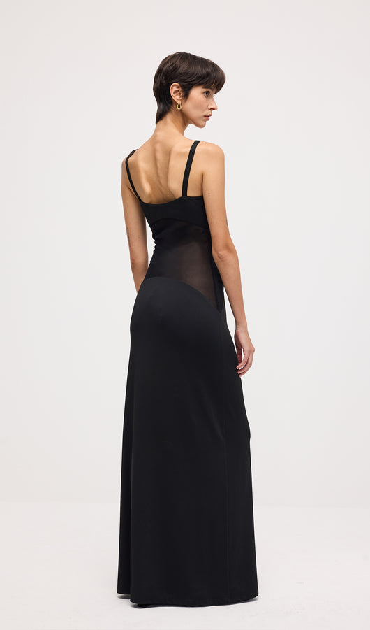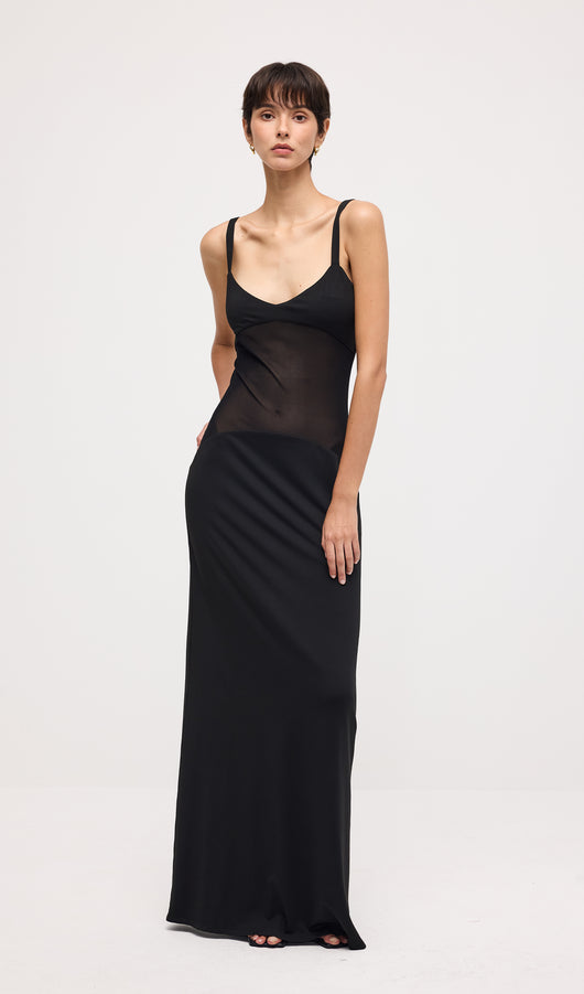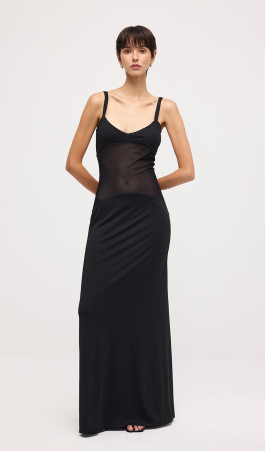 Introducing the Sheer Knit Curve Maxi Dress. Made from a delicate sheer knit fabric, this dress offers a flattering and curve-hugging fit. Perfect for any occasion, it effortlessly combines comfort and style. Elevate your wardrobe with this must-have piece.