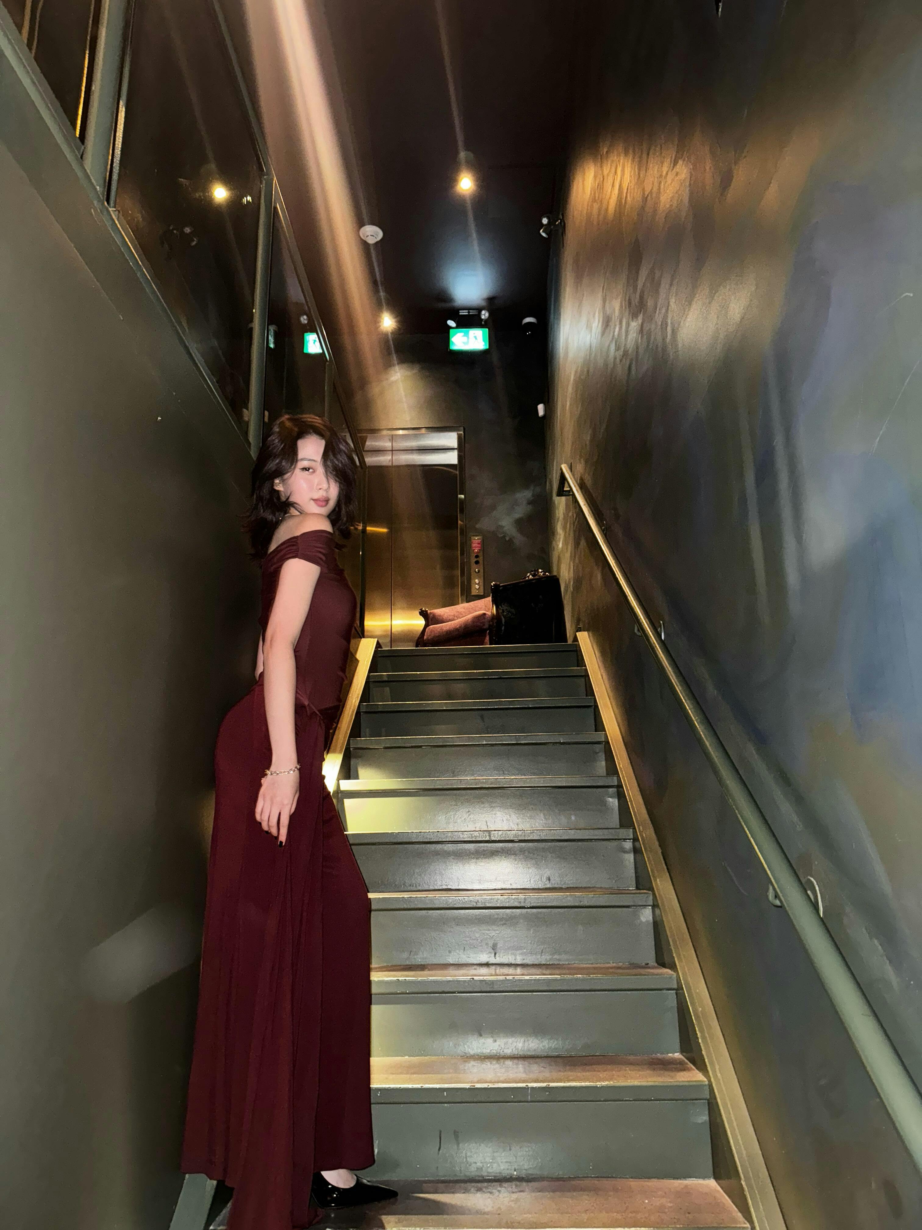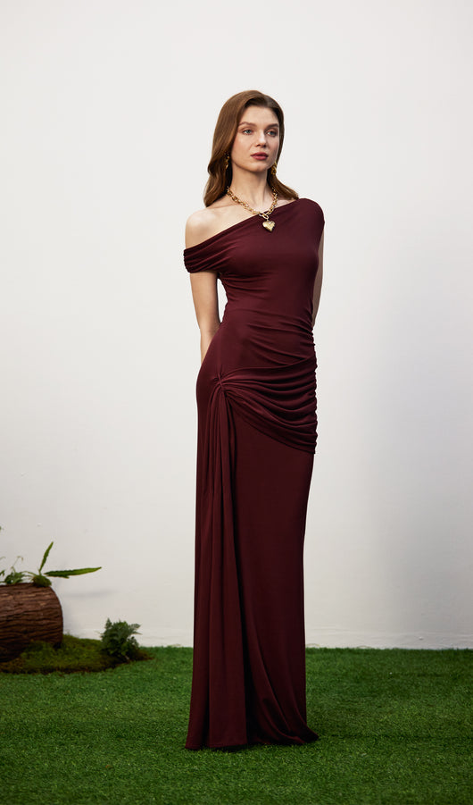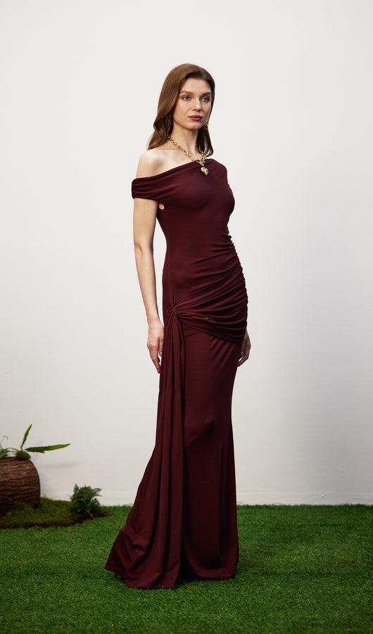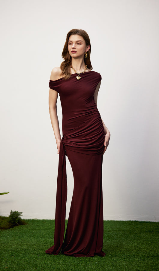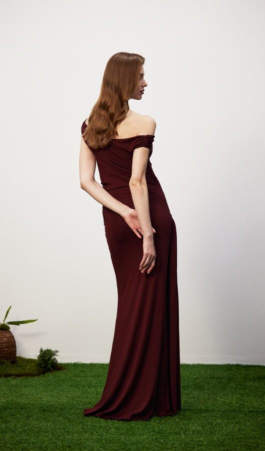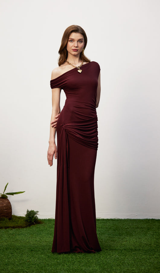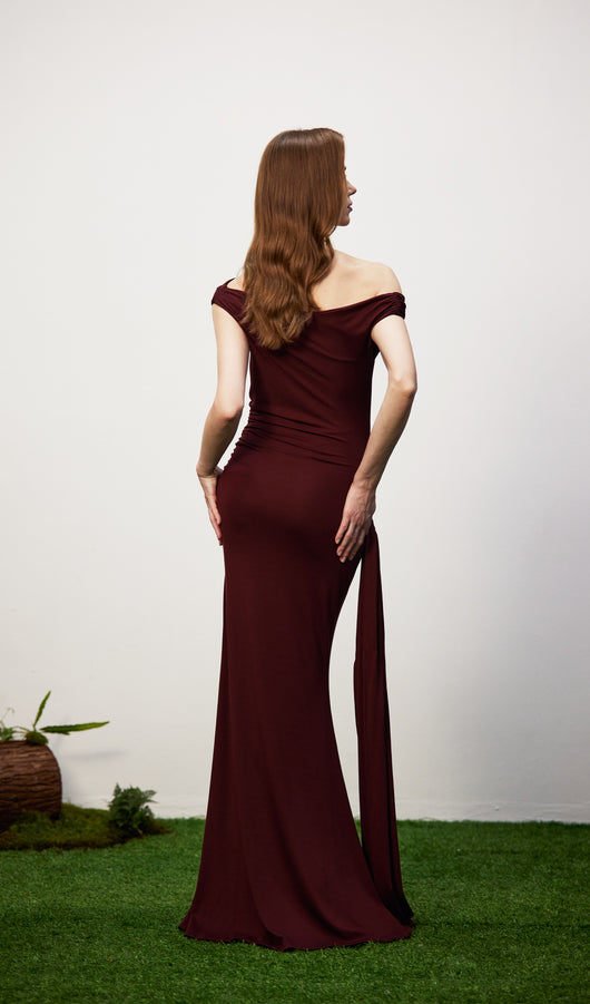 Solid Slinky Fishtail Maxi Dress - Mahogany