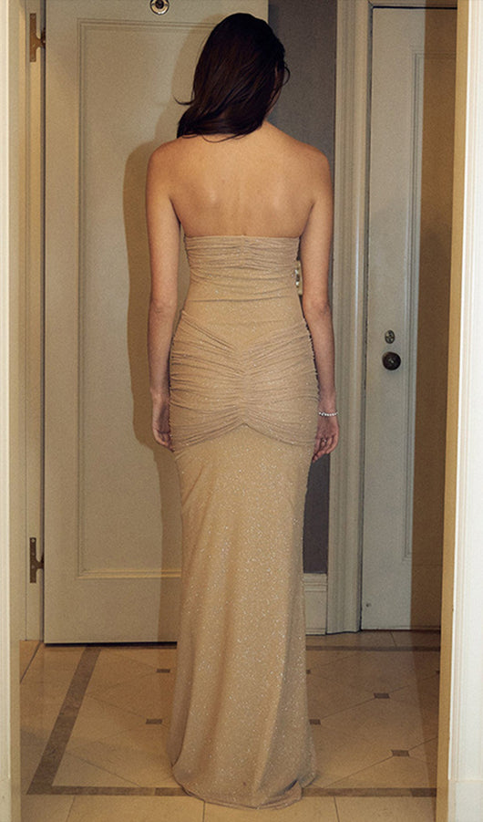 Introducing the dress that will leave a trail of fairy dust with its glitter mesh fabric. A must-have for anyone who loves a touch of magic in their wardrobe.This bespoke, handmade dress is crafted with exceptional attention to detail using premium materials. Each stitch reflects the artistry and dedication of our skilled artisans, ensuring a timeless and elegant look. Designed to complement every season—Spring, Summer, Fall, and Winter—this dress is as versatile as it is beautiful.
