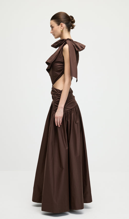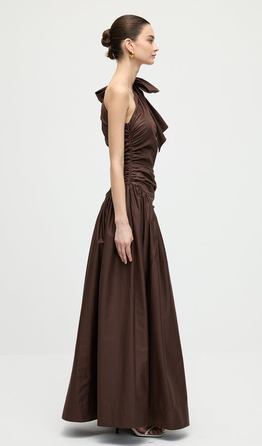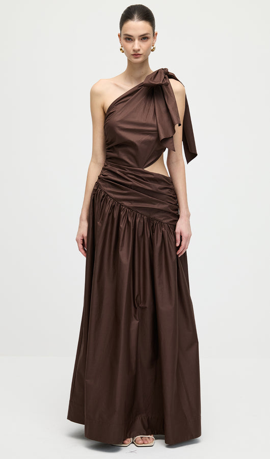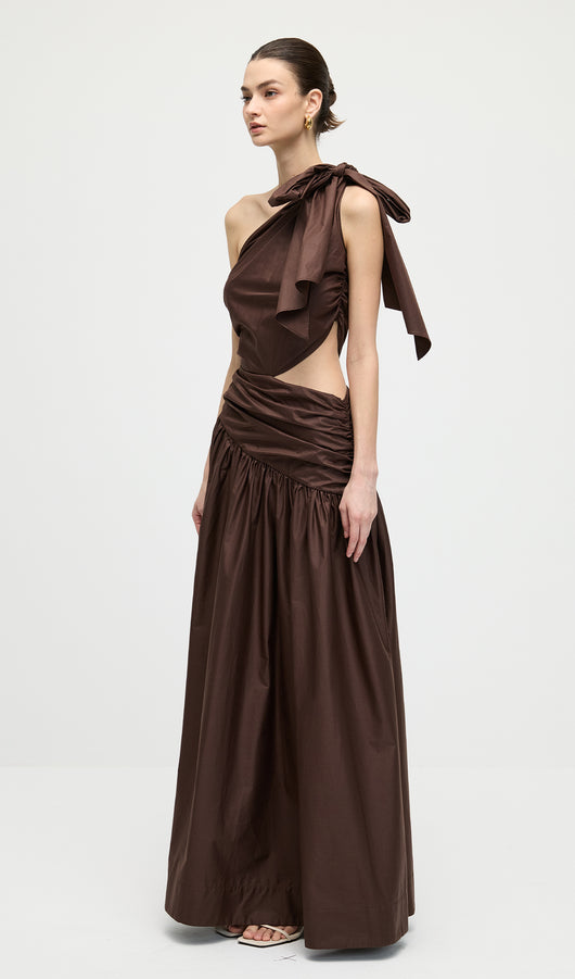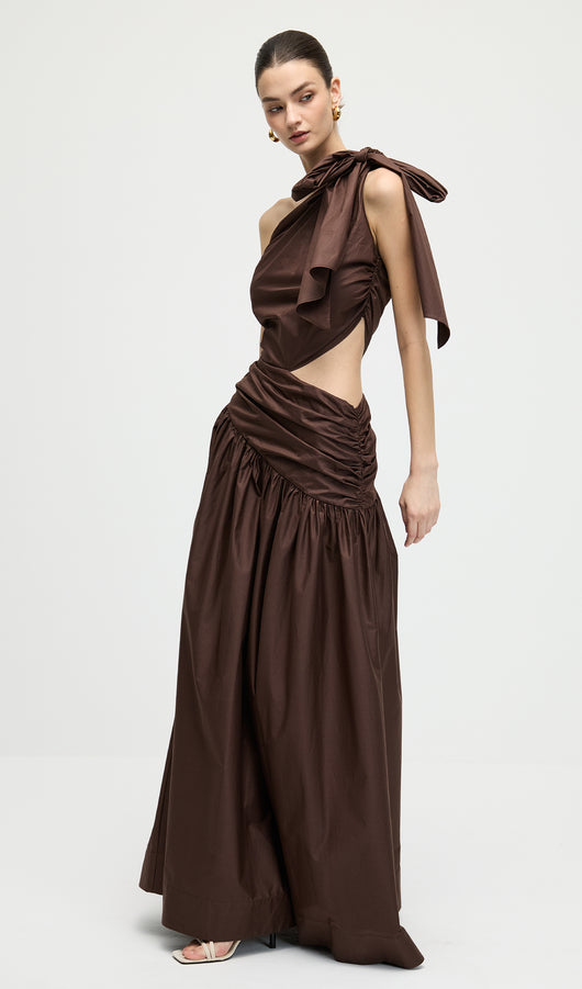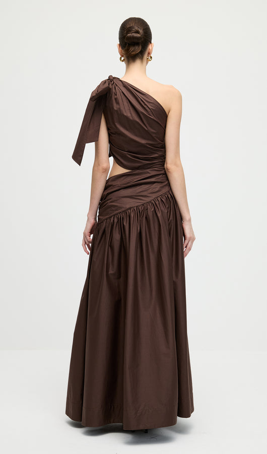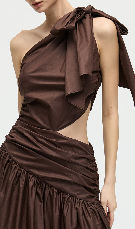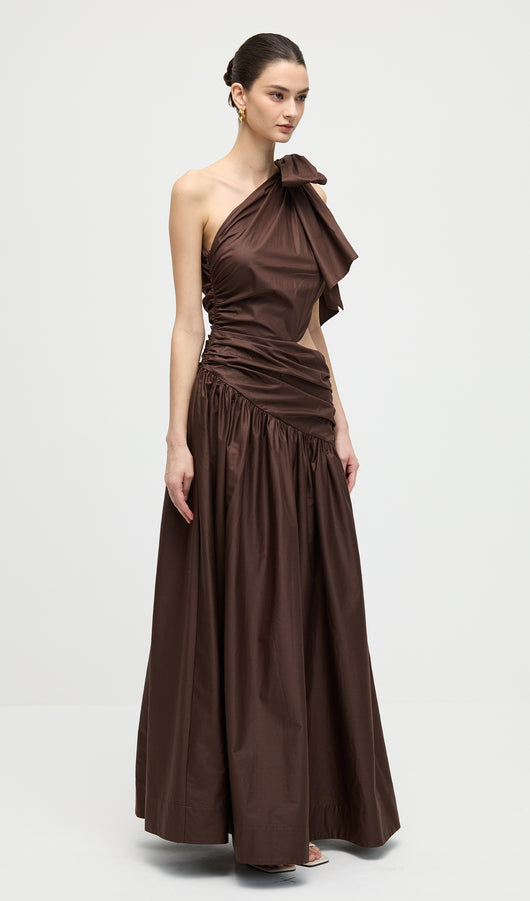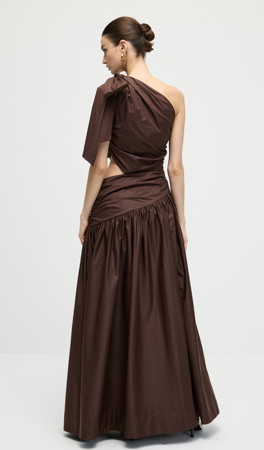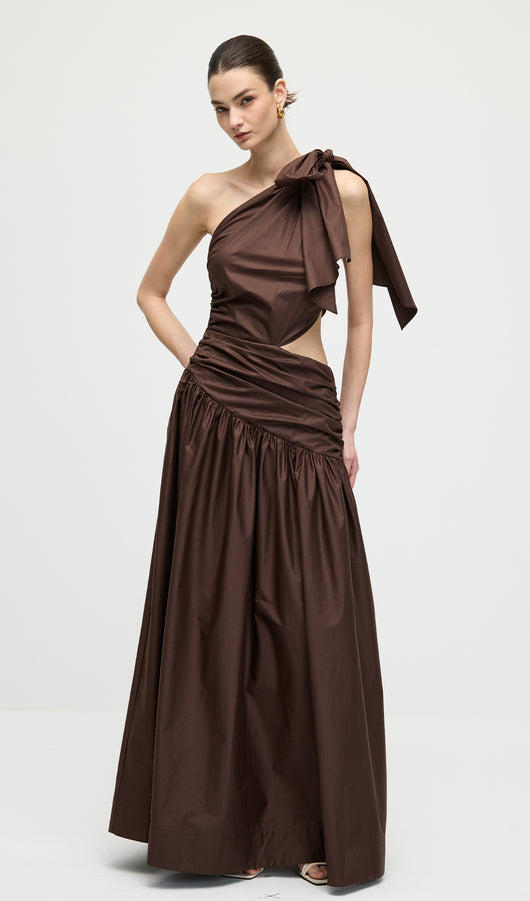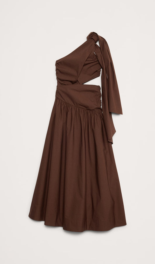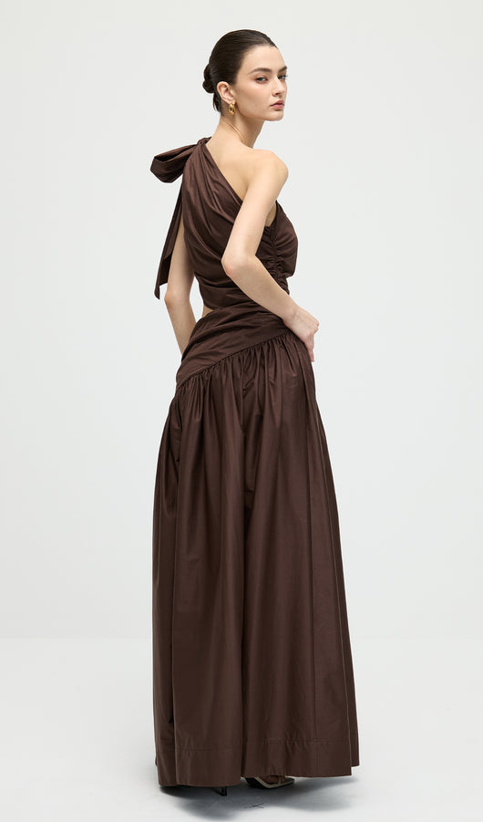 Stretch Cotton Poplin One Shoulder Maxi Dress