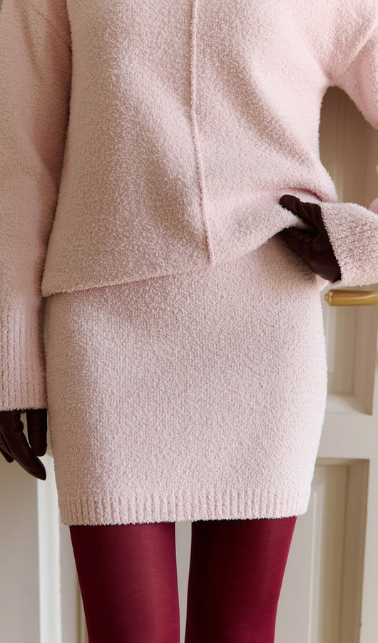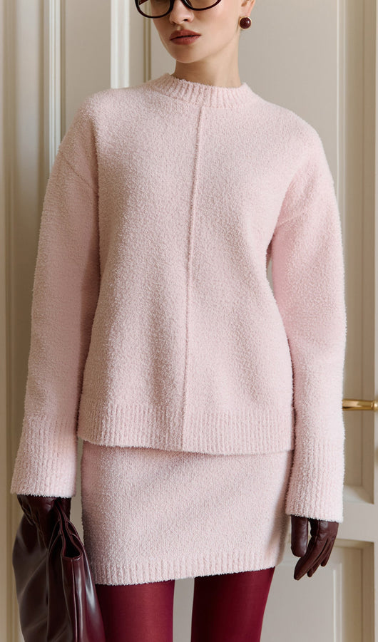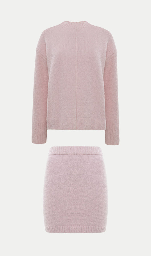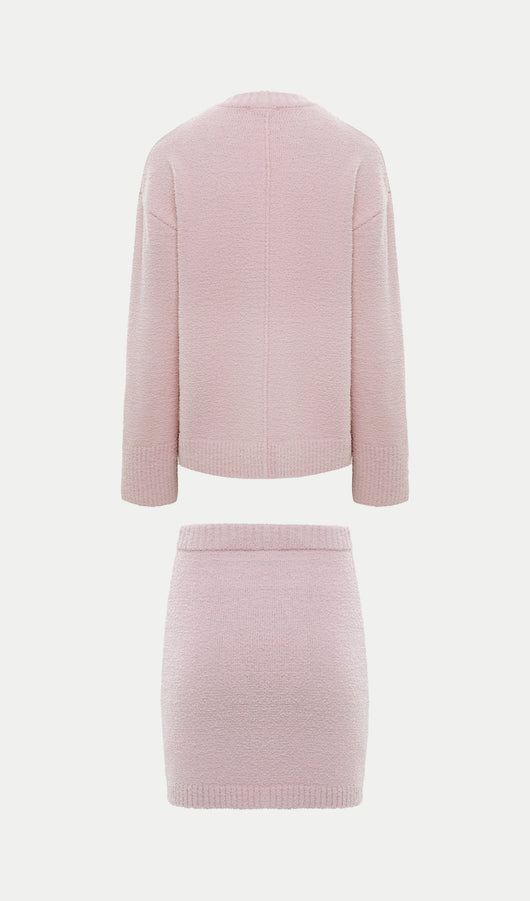 Textured Knitted Jumper & Mini Skirt Set Pink