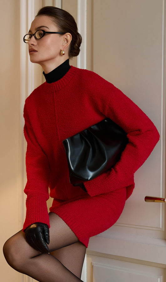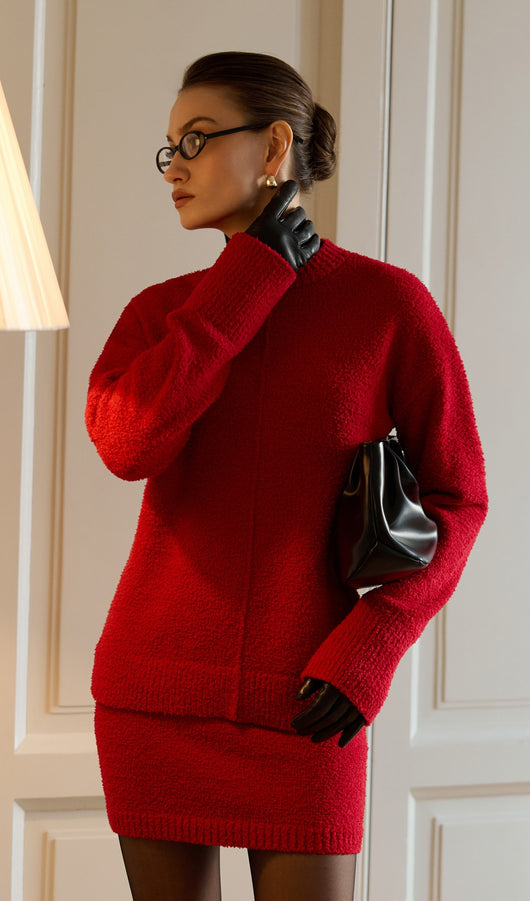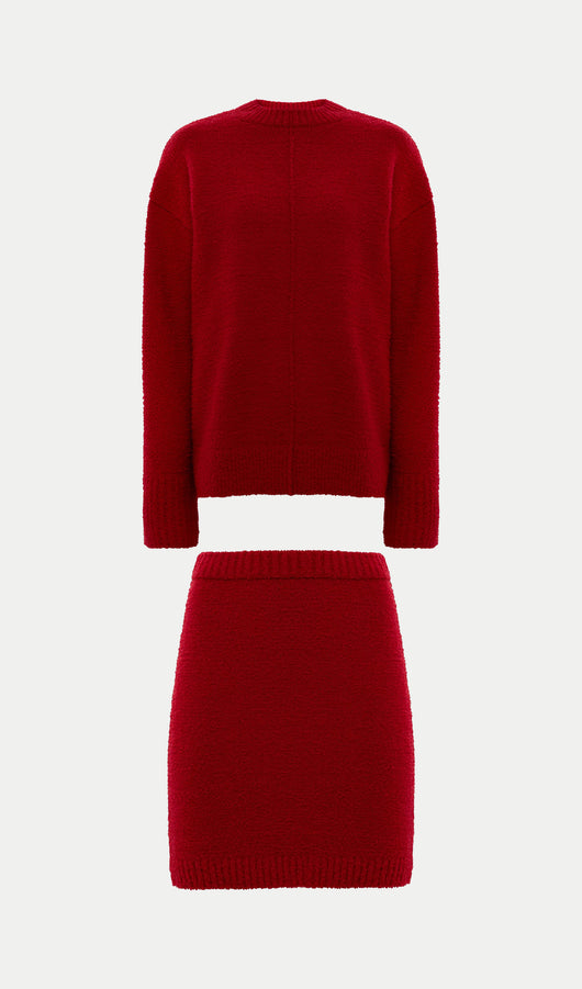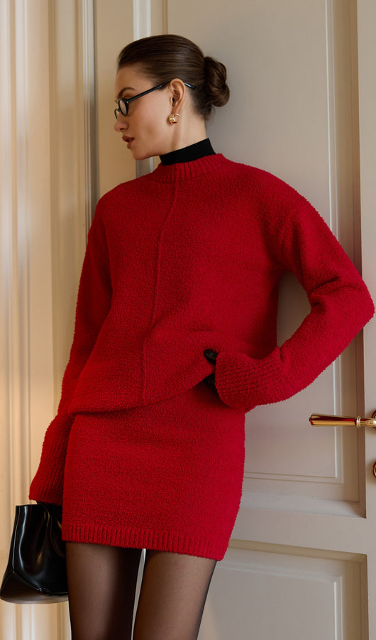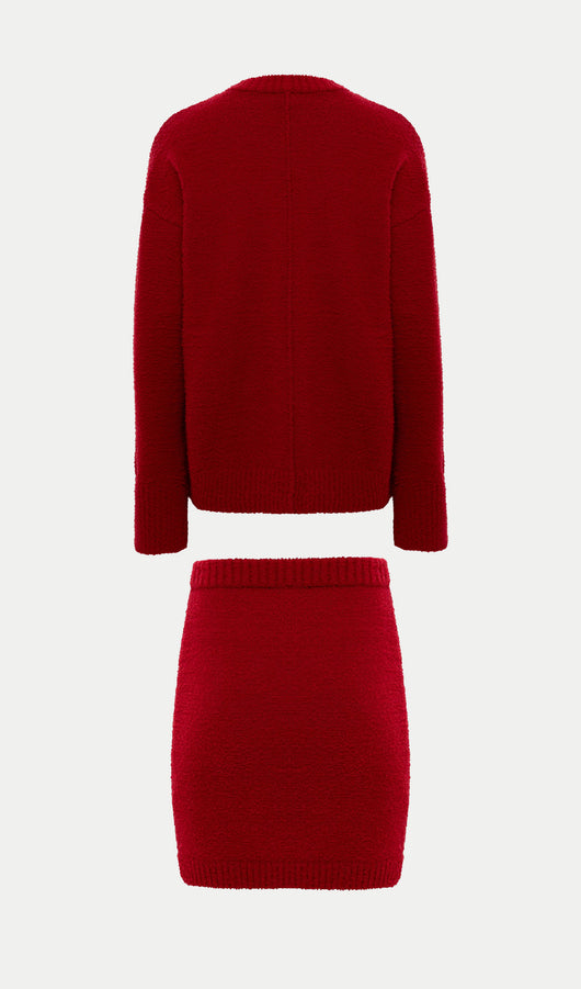 Textured Knitted Jumper & Mini Skirt Set Red