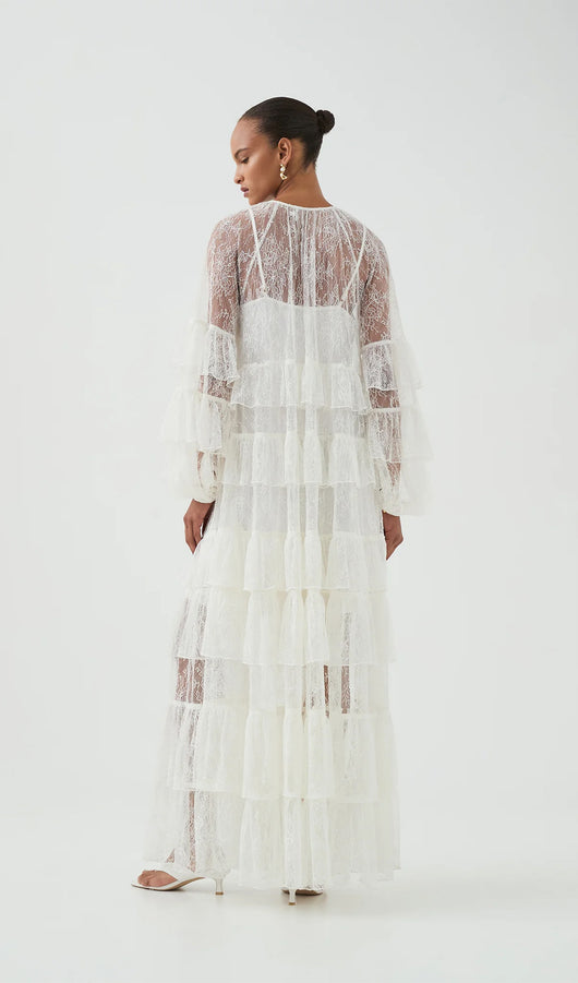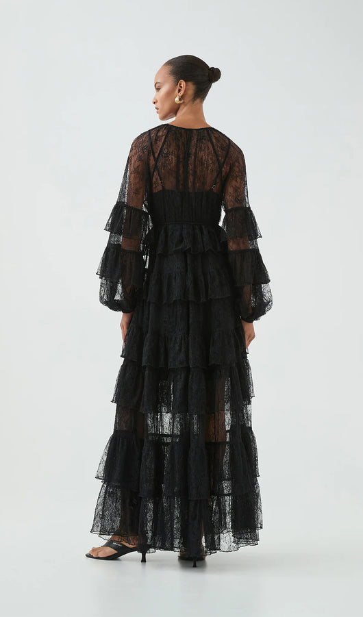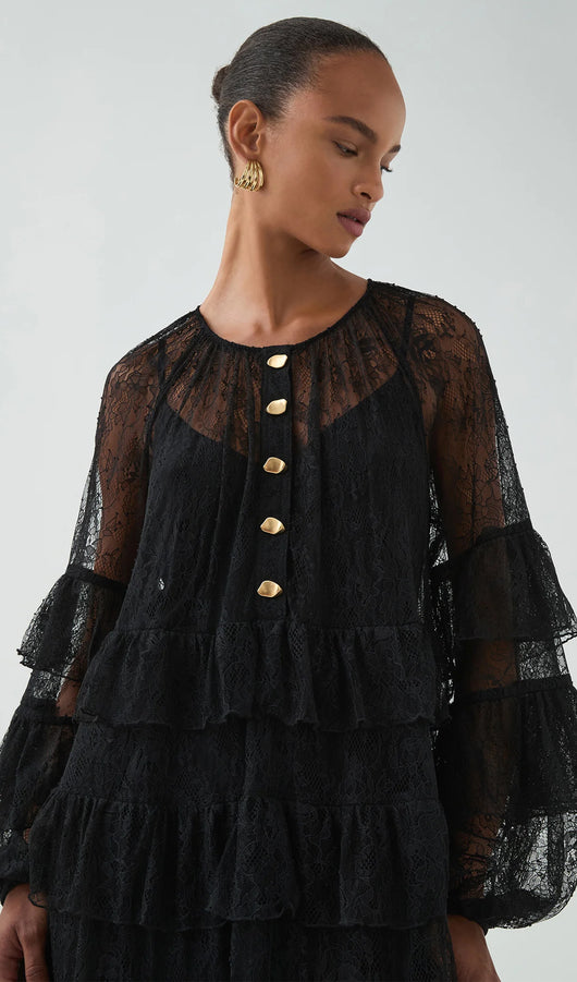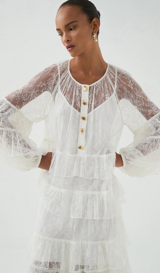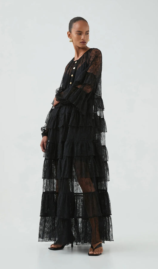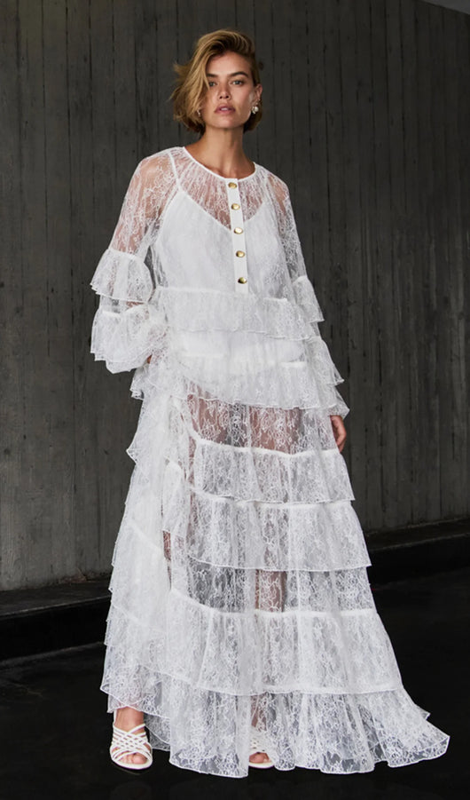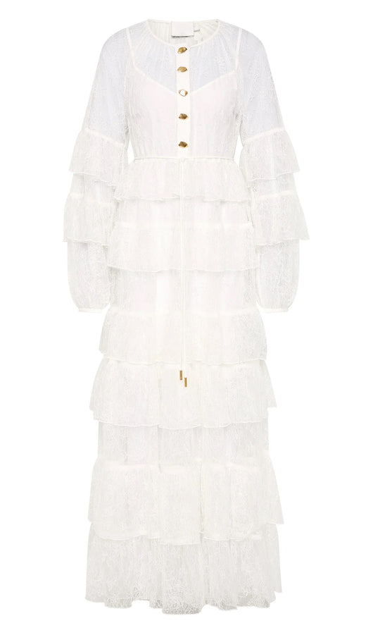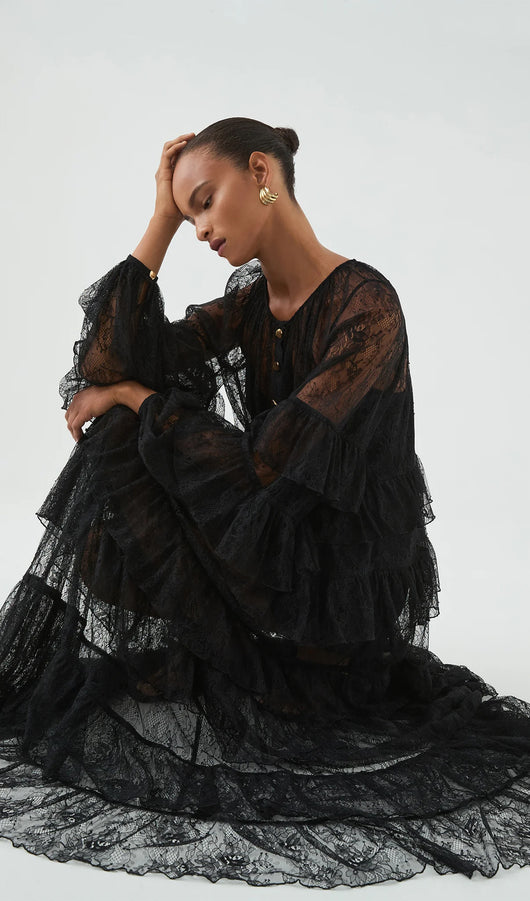 This elegant Tiered Lace Ruffle Maxi Dress combines sophisticated design with exceptional craftsmanship. The cascading tiers create visual dimension while delicate lace detailing adds refined texture. Strategic ruffle placement enhances the silhouette, offering both movement and structure. Perfect for formal occasions or elevated casual events where distinctive style is essential.