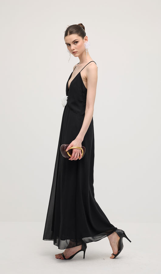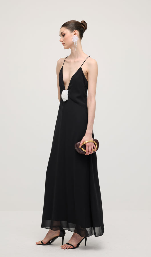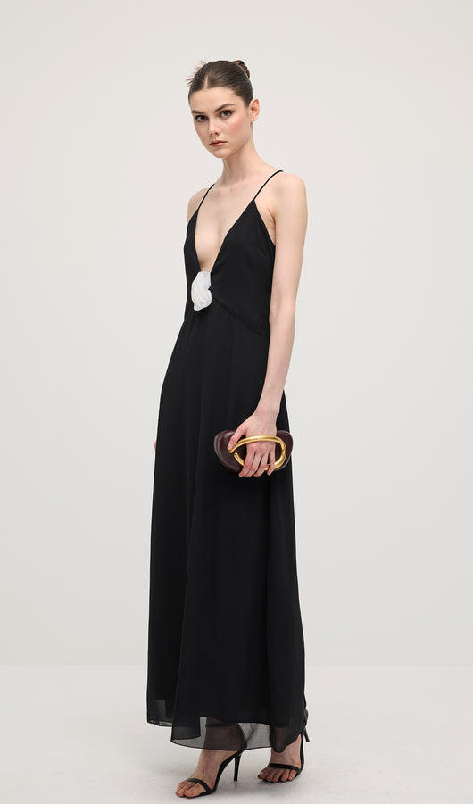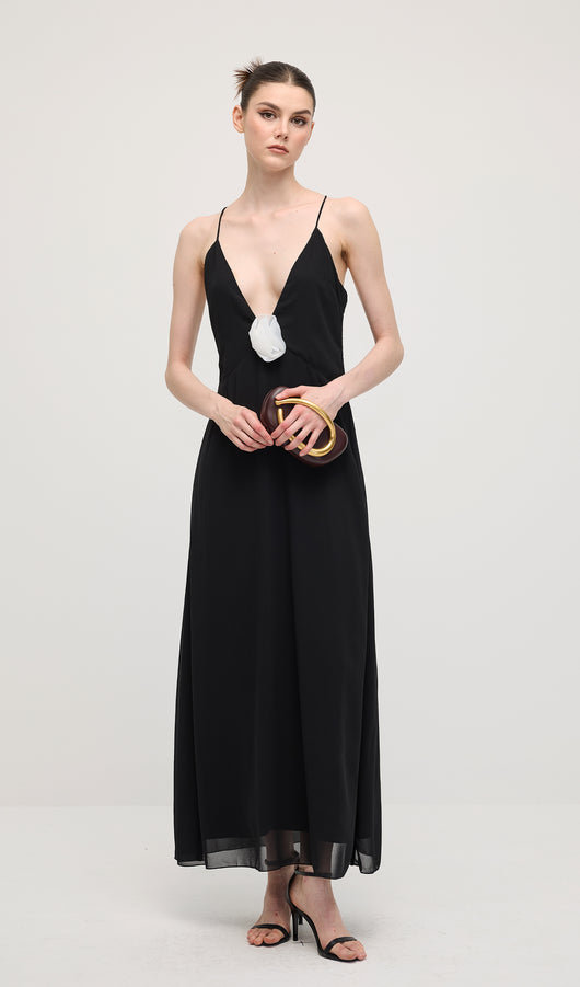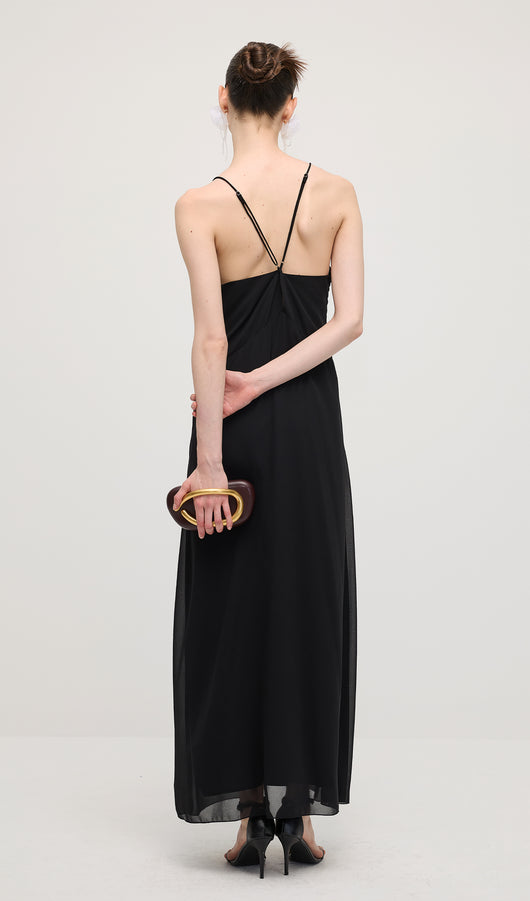 V Neck Halter Maxi Dress In Black