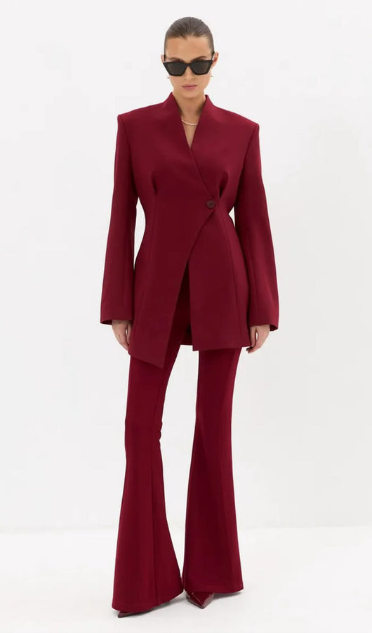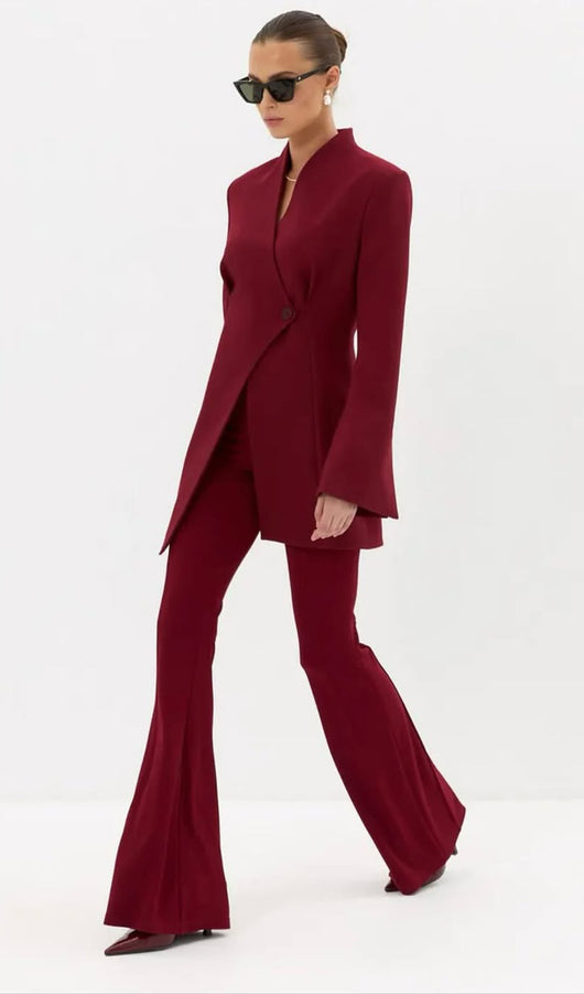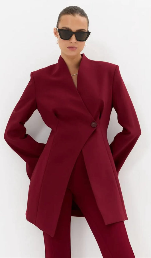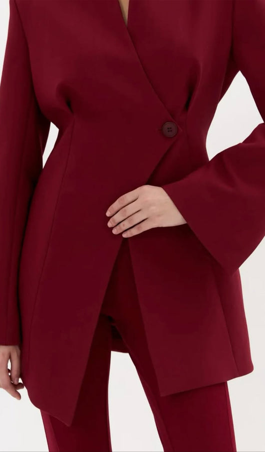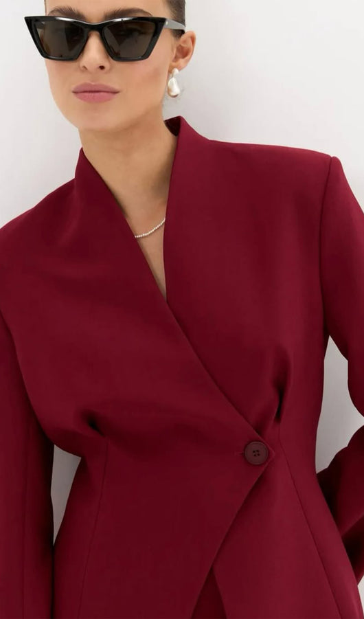 Elevate your professional wardrobe with this V Neck Long Sleeve Blazer in Claret. Crafted for a refined fit, its deep V neckline offers a modern silhouette while the long sleeves provide a polished, tailored look. The rich claret color adds depth and sophistication, making it ideal for both office settings and formal occasions. Designed to complement a variety of outfits, this blazer enhances your presence with understated elegance and expert tailoring.