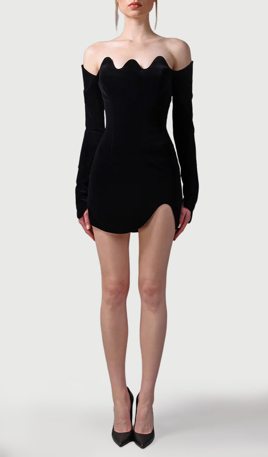 Velvet Mini Dress With Waves Neckline