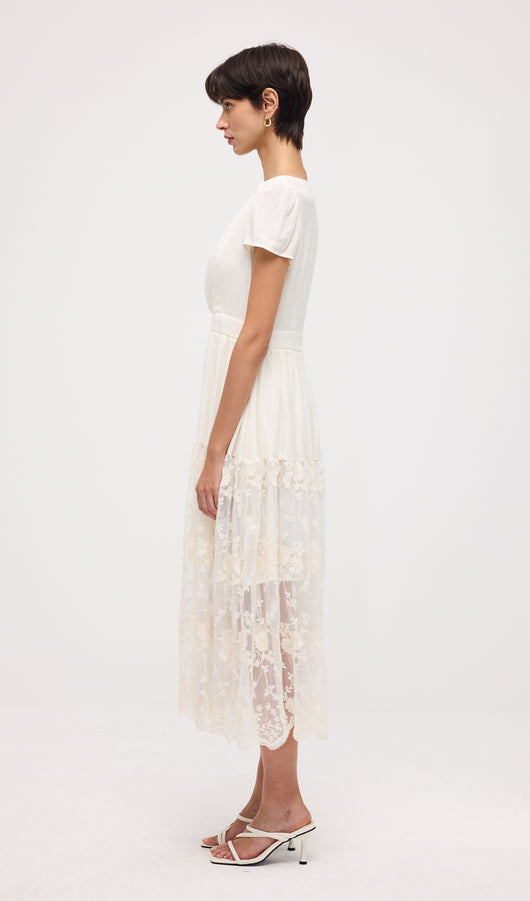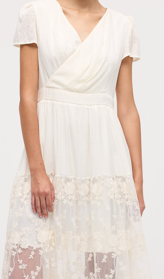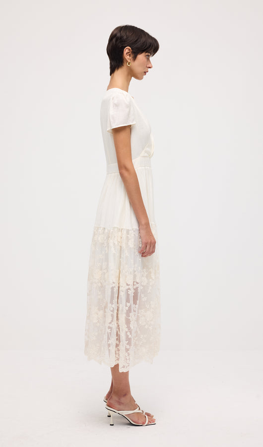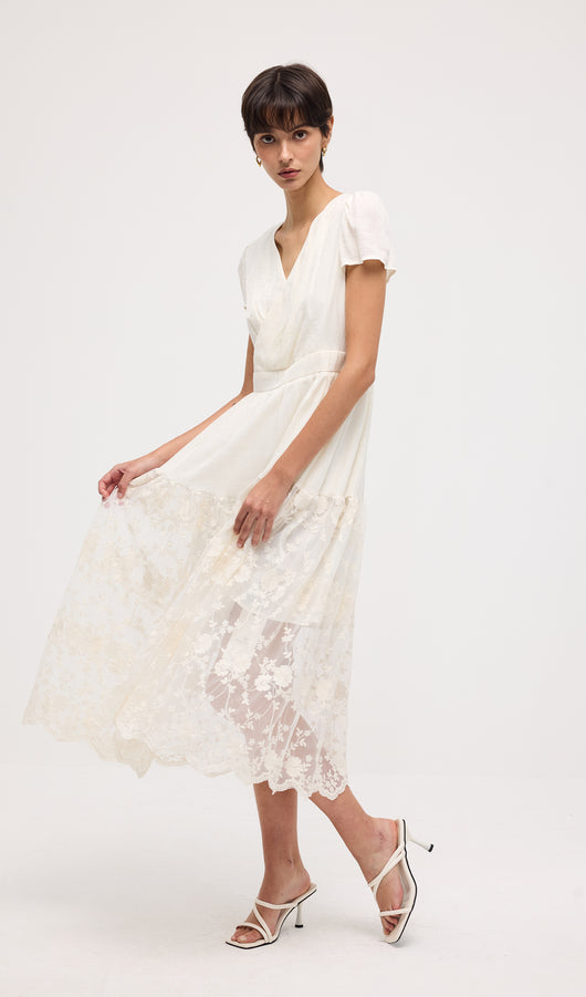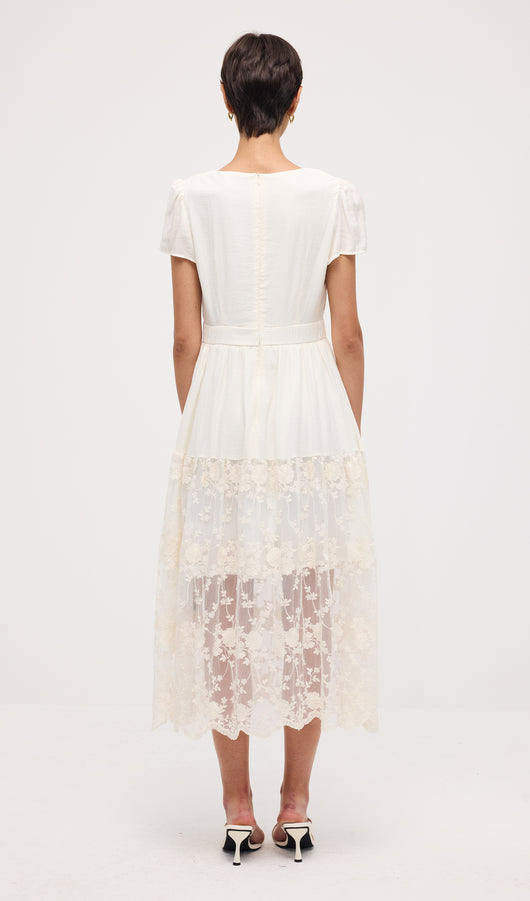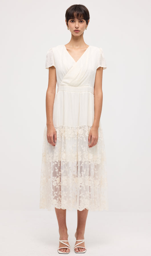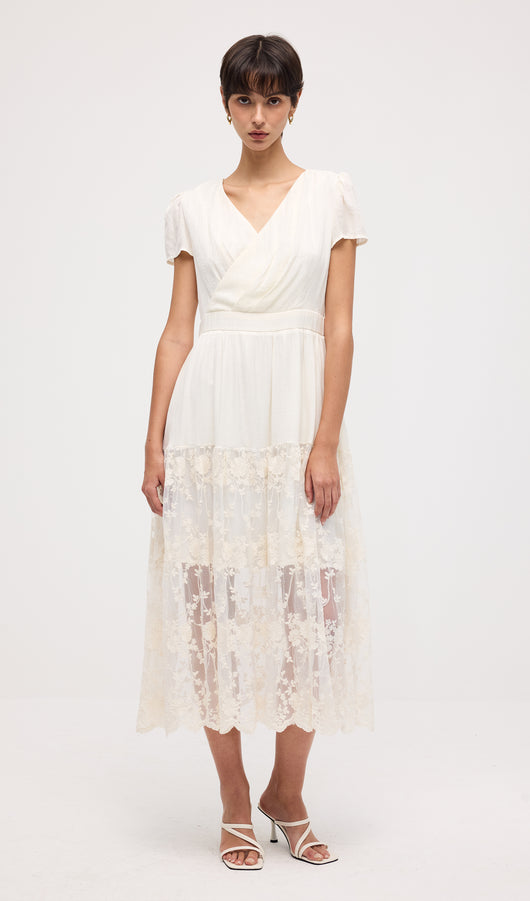 Elevate your wardrobe with this White Lace Overlay Midi Dress, expertly crafted to combine elegance and comfort. The delicate lace overlay adds intricate texture and a timeless feminine touch, while the midi length offers versatile styling options suitable for both formal and semi-formal occasions. Designed for a flattering fit, this dress ensures you look polished and refined with minimal effort. Perfect for events where a sophisticated yet understated look is desired.